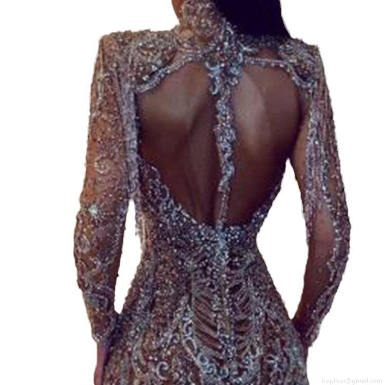 • Women's Sexy Backless Sequin Mini Dress With Tassels Long Sleeve High Neck Sparkling Beaded Mesh Cocktail Party Evening Club Bodycon Dress