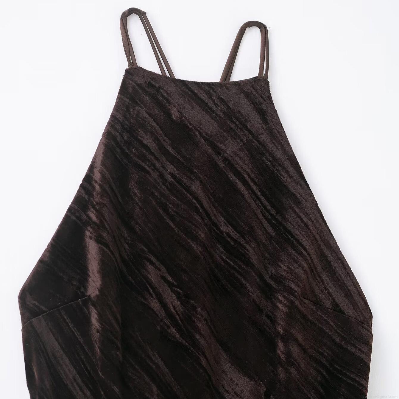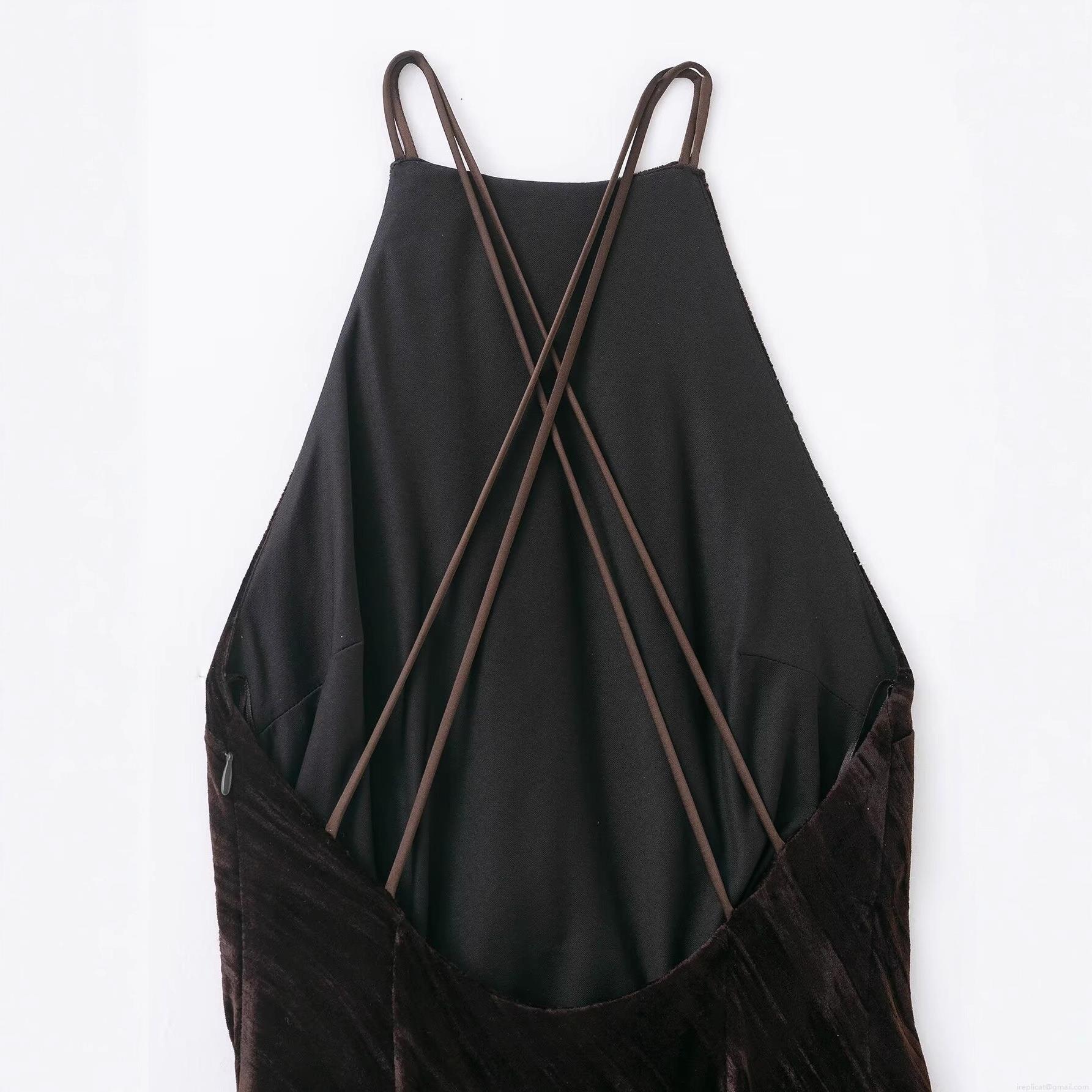 • Women's Sexy Backless Velvet Fringe Maxi Dress Halter Neck Slim Fit Elegant Luxurious Tassel High Waist Bodycon Evening Party Banquet Long Dress
