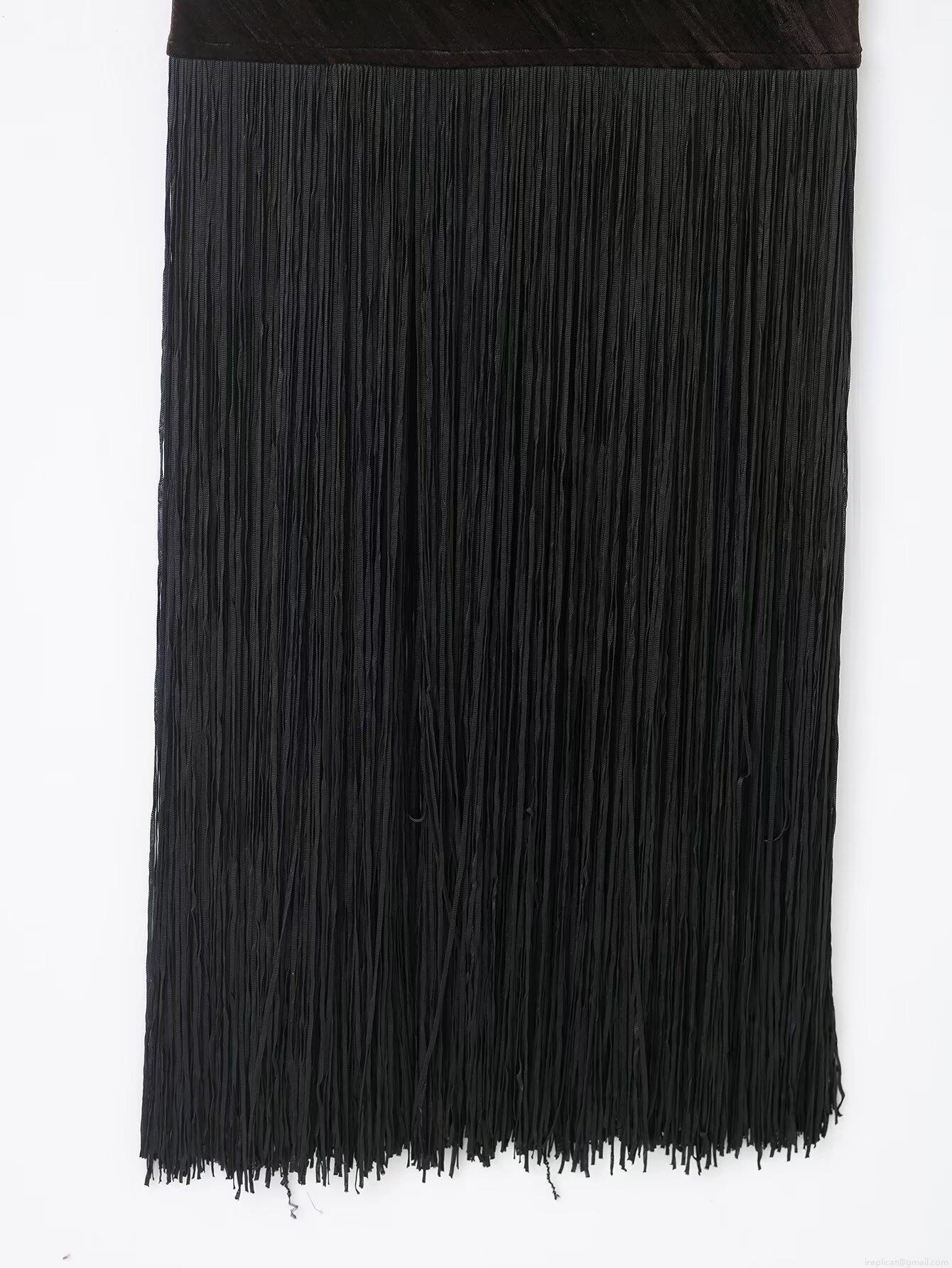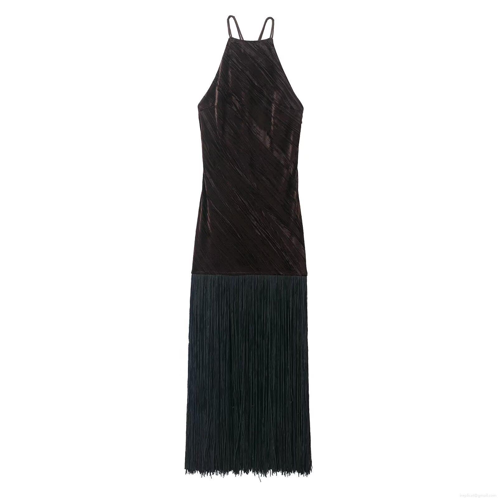 Women's Sexy Backless Velvet Fringe Maxi Dress Halter Neck Slim Fit Elegant Luxurious Tassel High Waist Bodycon Evening Party Banquet Long Dress