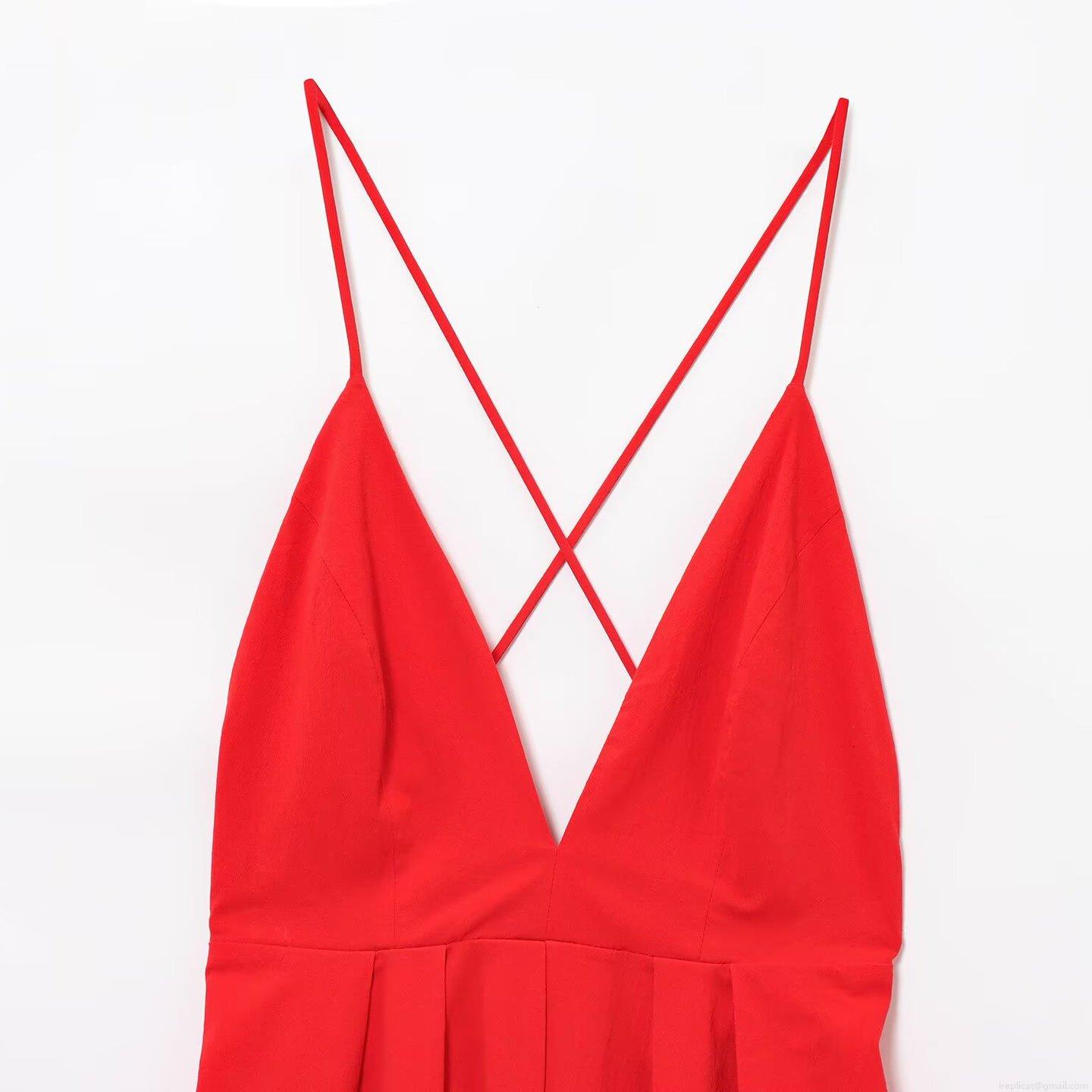 Solid Color, Pleats, V-neck, Backless, Cross Shoulder Straps