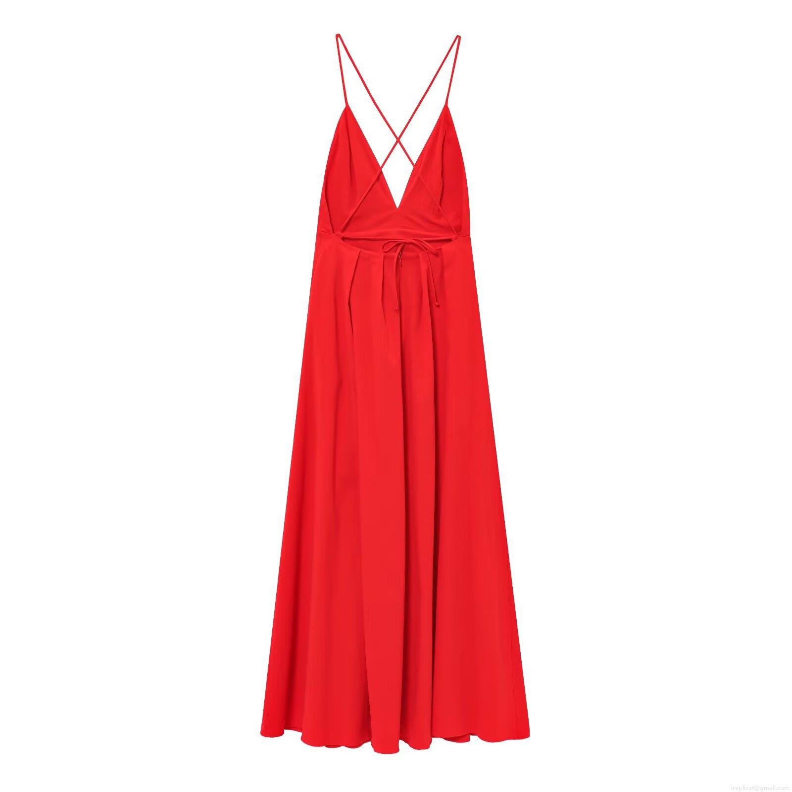 • Women's Sexy Backless V-Neck Maxi Dress Summer Sleeveless Cross Strap Camisole A-Line Pleated Party Dress for Ladies