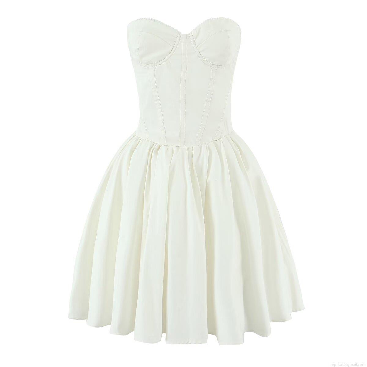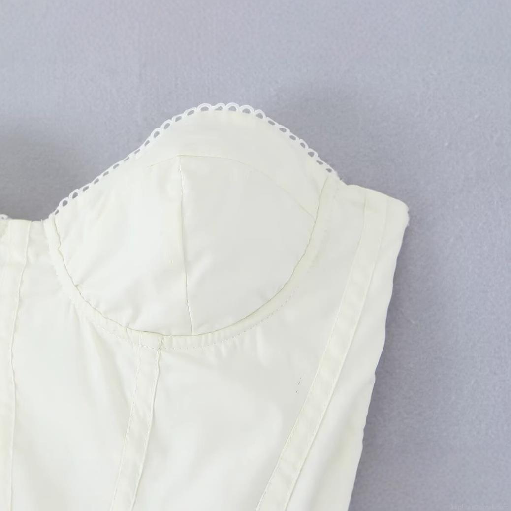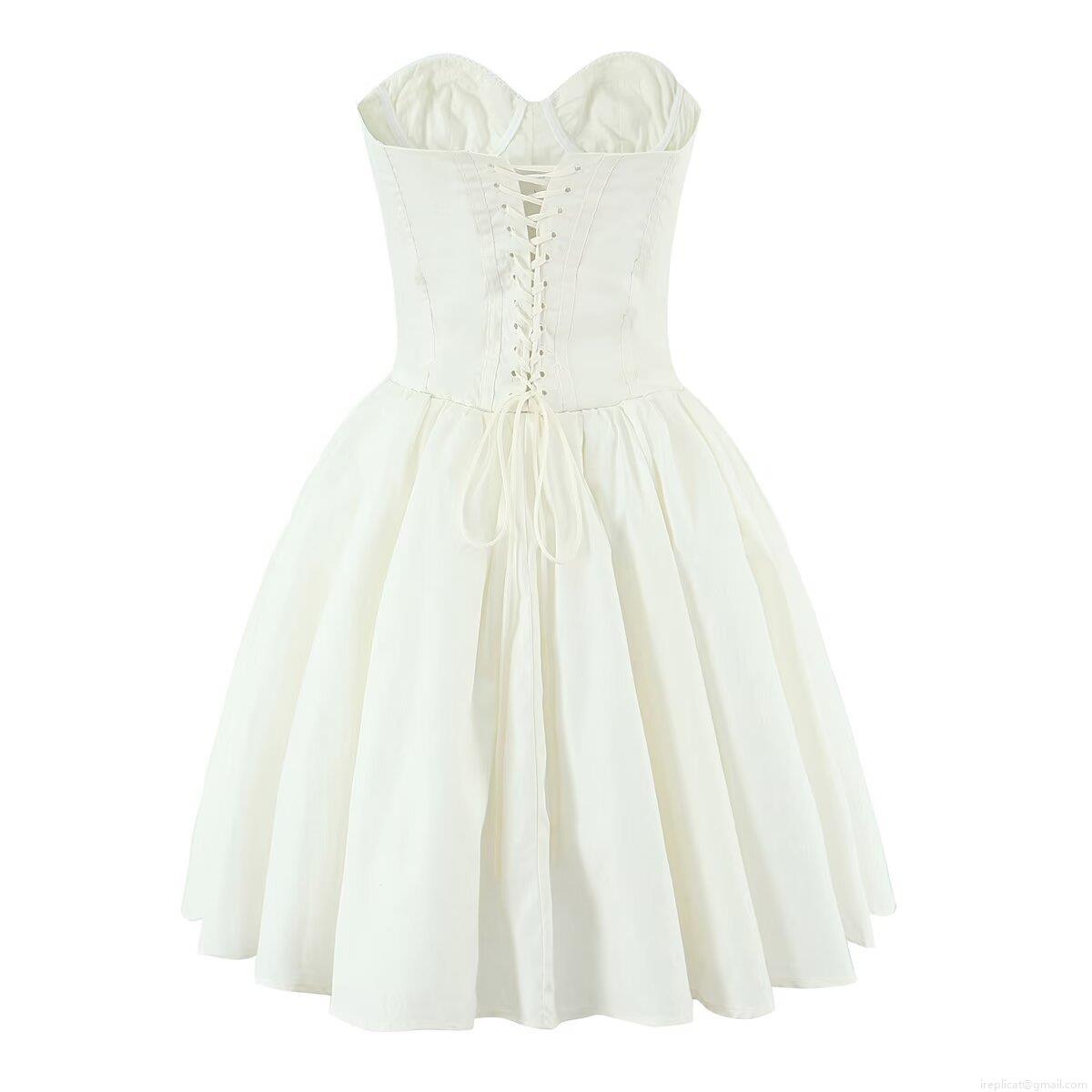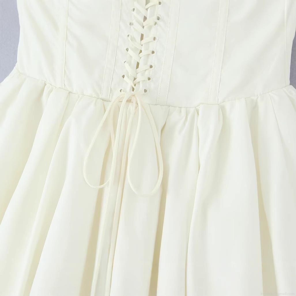 • Women's Sexy Bandeau Corset Mini Dress 100% Cotton Back Lace-up Bubble Skirt Sleeveless Scalloped Lace Trim Solid Color Summer Party Streetwear