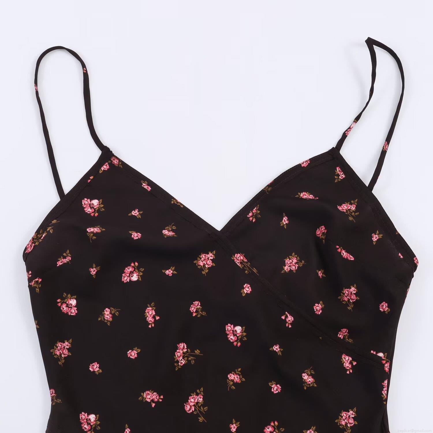• Women's Sexy Floral Print Cami Midi Dress V Neck High Waist Slim Fit Sleeveless Summer Beach Party Vacation Dress
