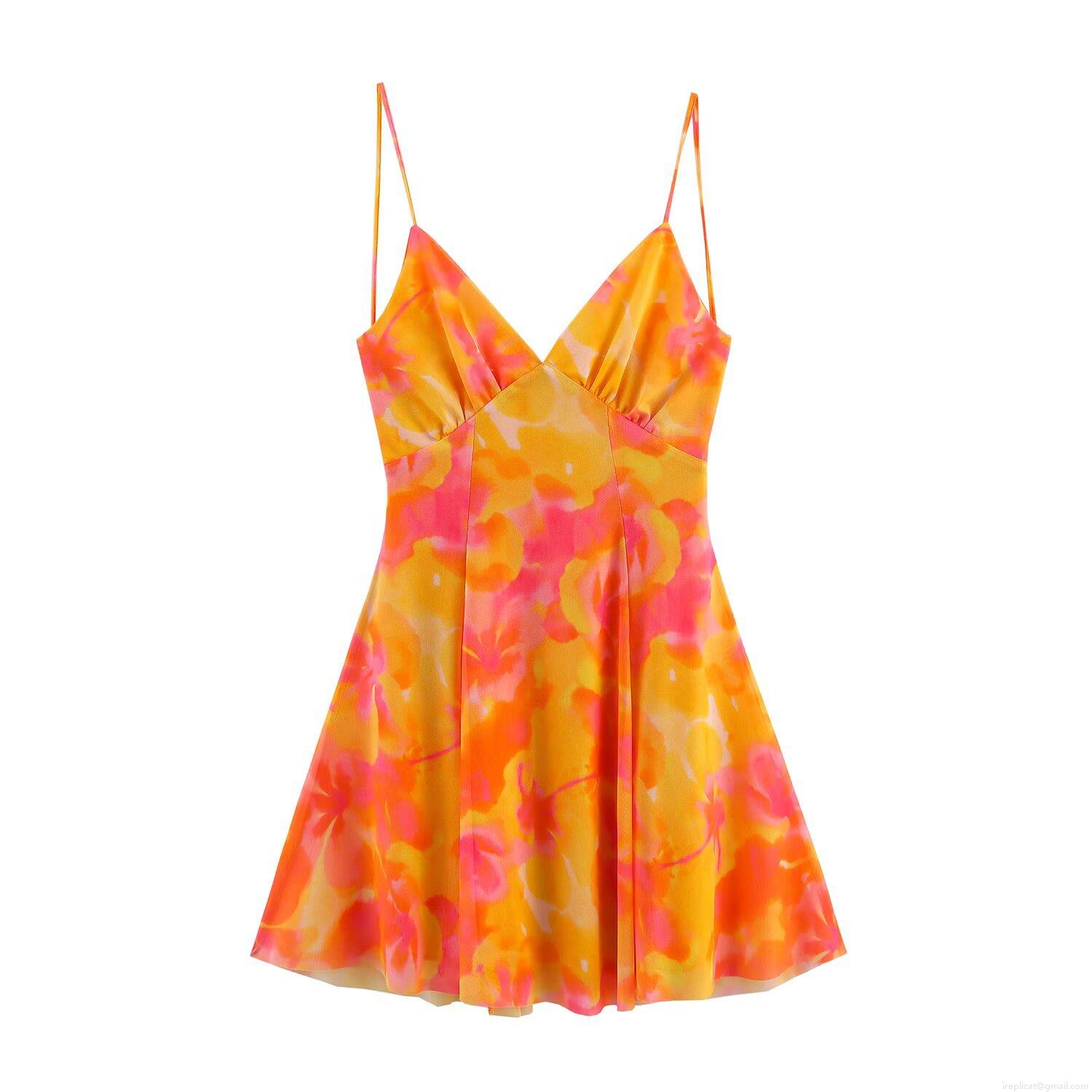 • Women's Sexy Mesh Print Cami Mini Dress V Neck Sleeveless Backless Tropical Leopard Floral Mesh Sundress For Summer Vacation Beach Party