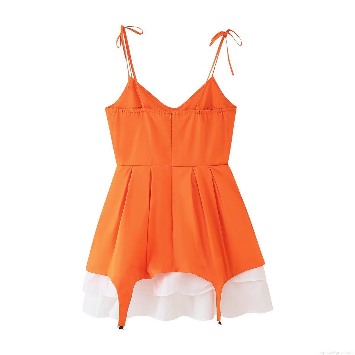 • Women's Sexy Orange and White Layered Camisole Mini Dress Polyester V-Neck Socialite Party Vacation Dresses With Metal Decoration For Women
