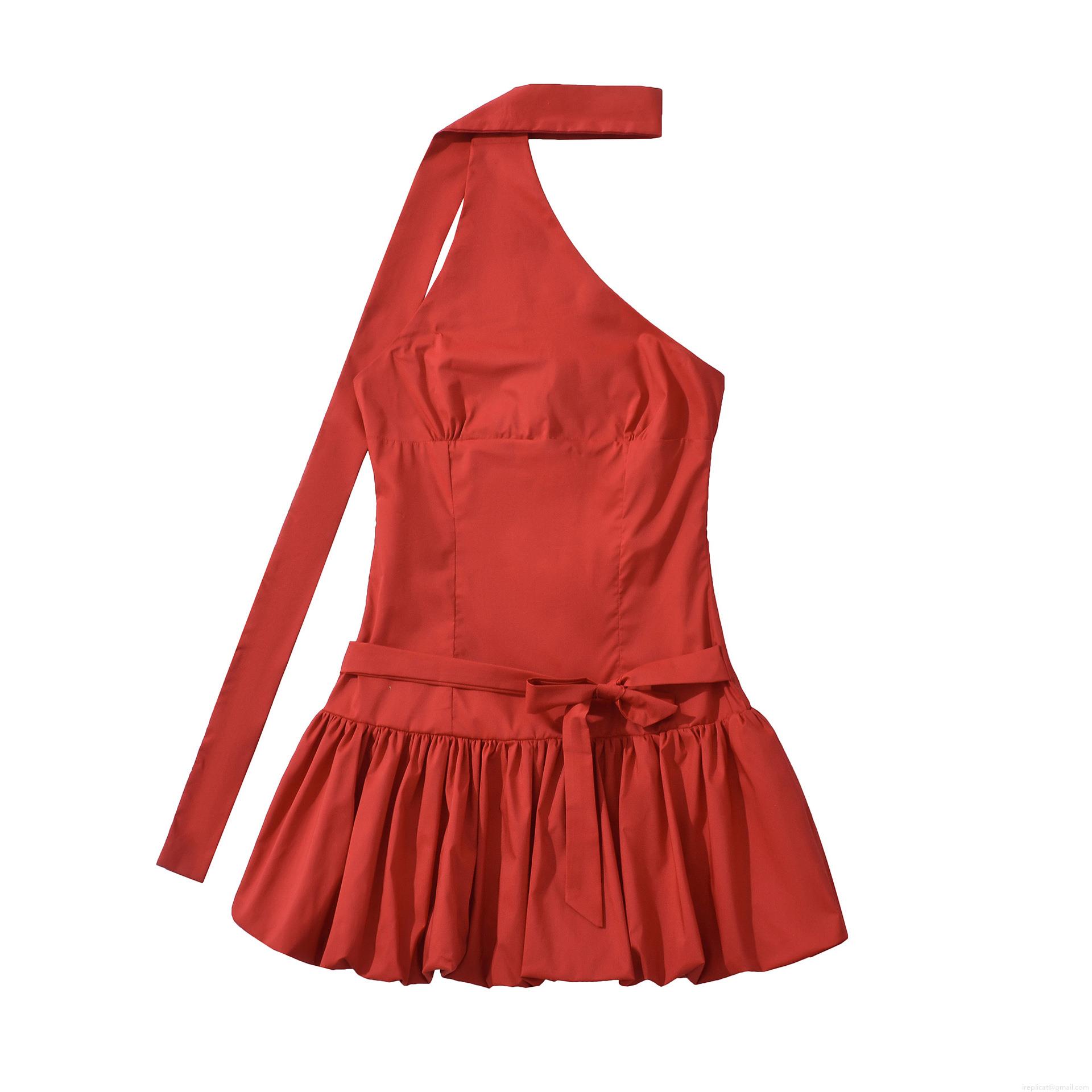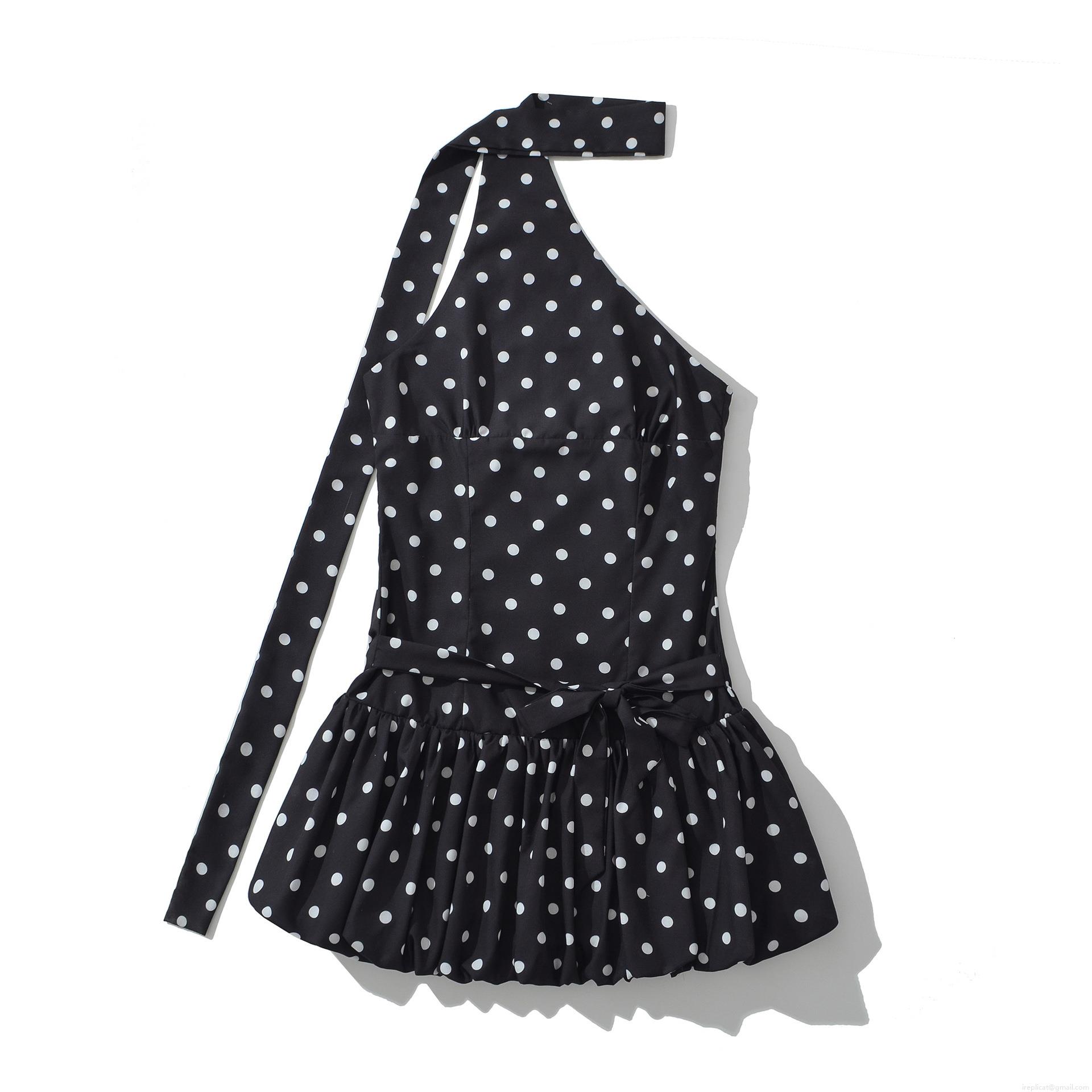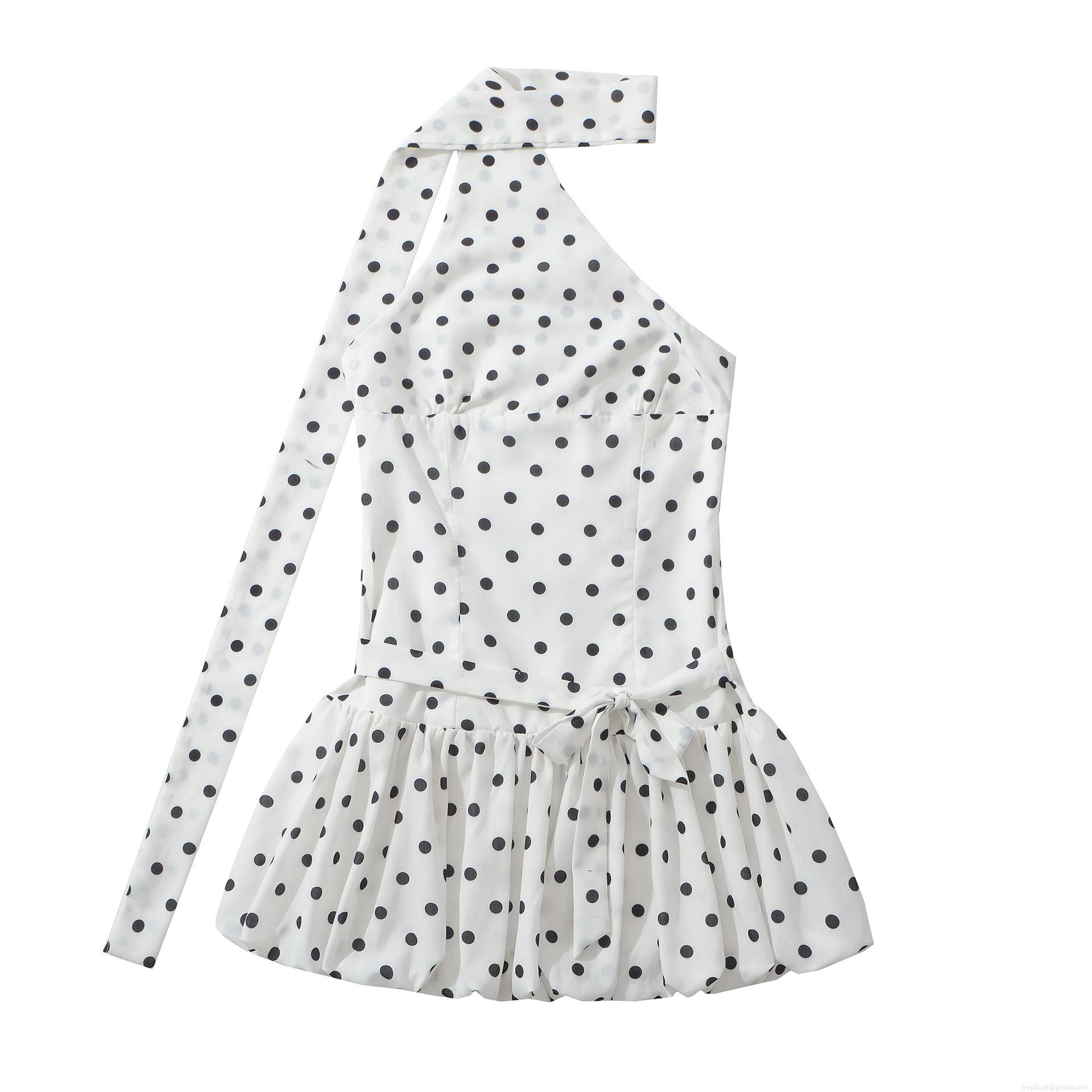 • Women's Sexy Polka Dot One Shoulder Halter Neck Peplum Dress Ruffle Hem Summer Mini Dresses With Bowknot Waist Casual Polyester Cotton Streetwear Clothing
