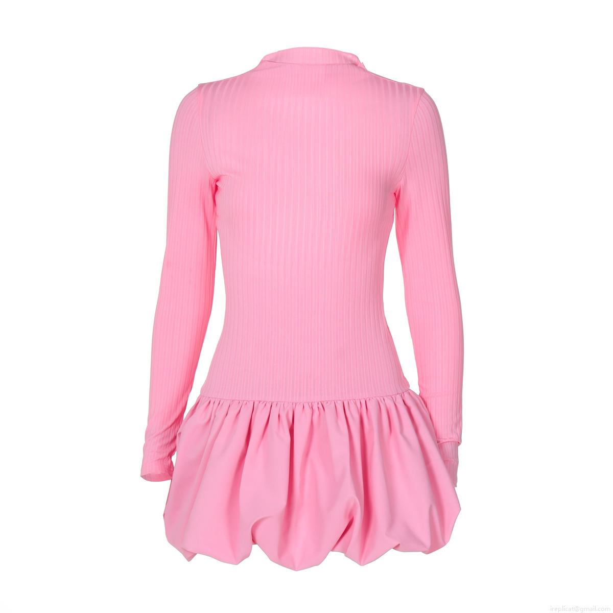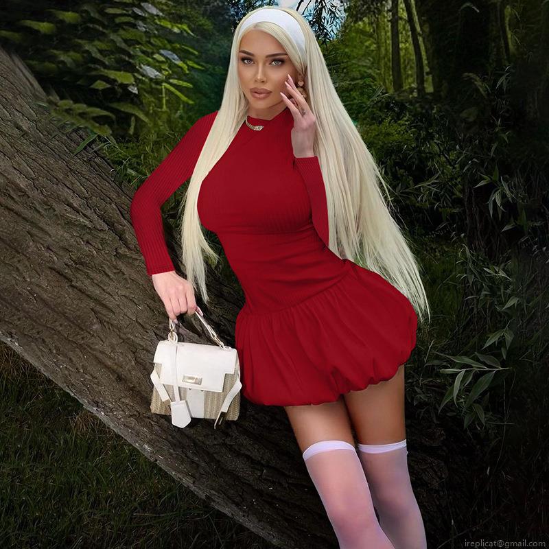 Solid Color, Ruffles, Ribbed Knit, Open Back, Bubble Skirt