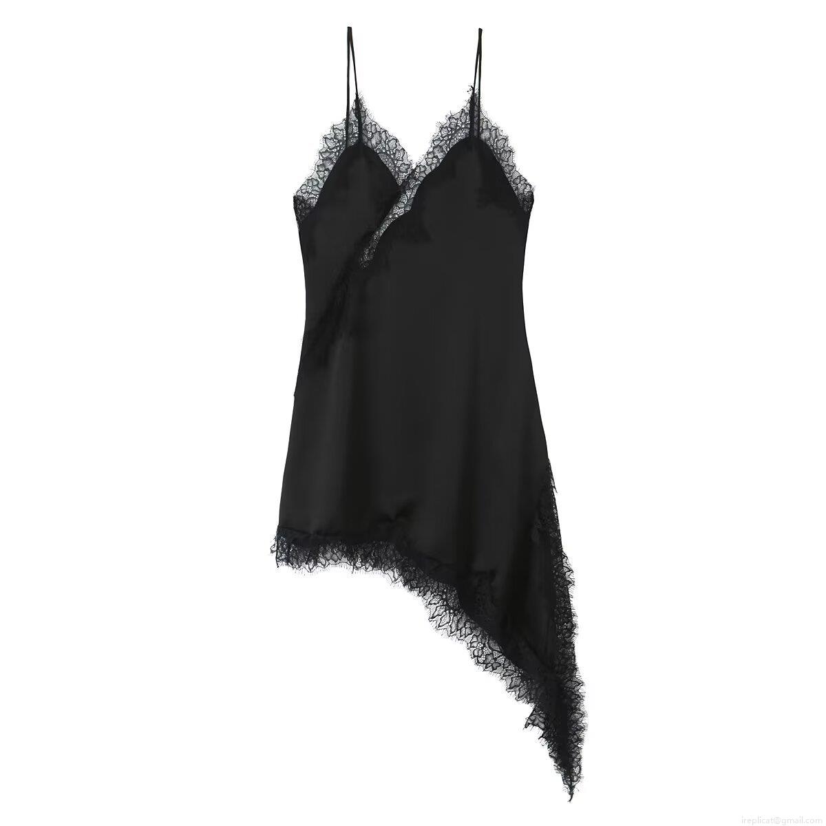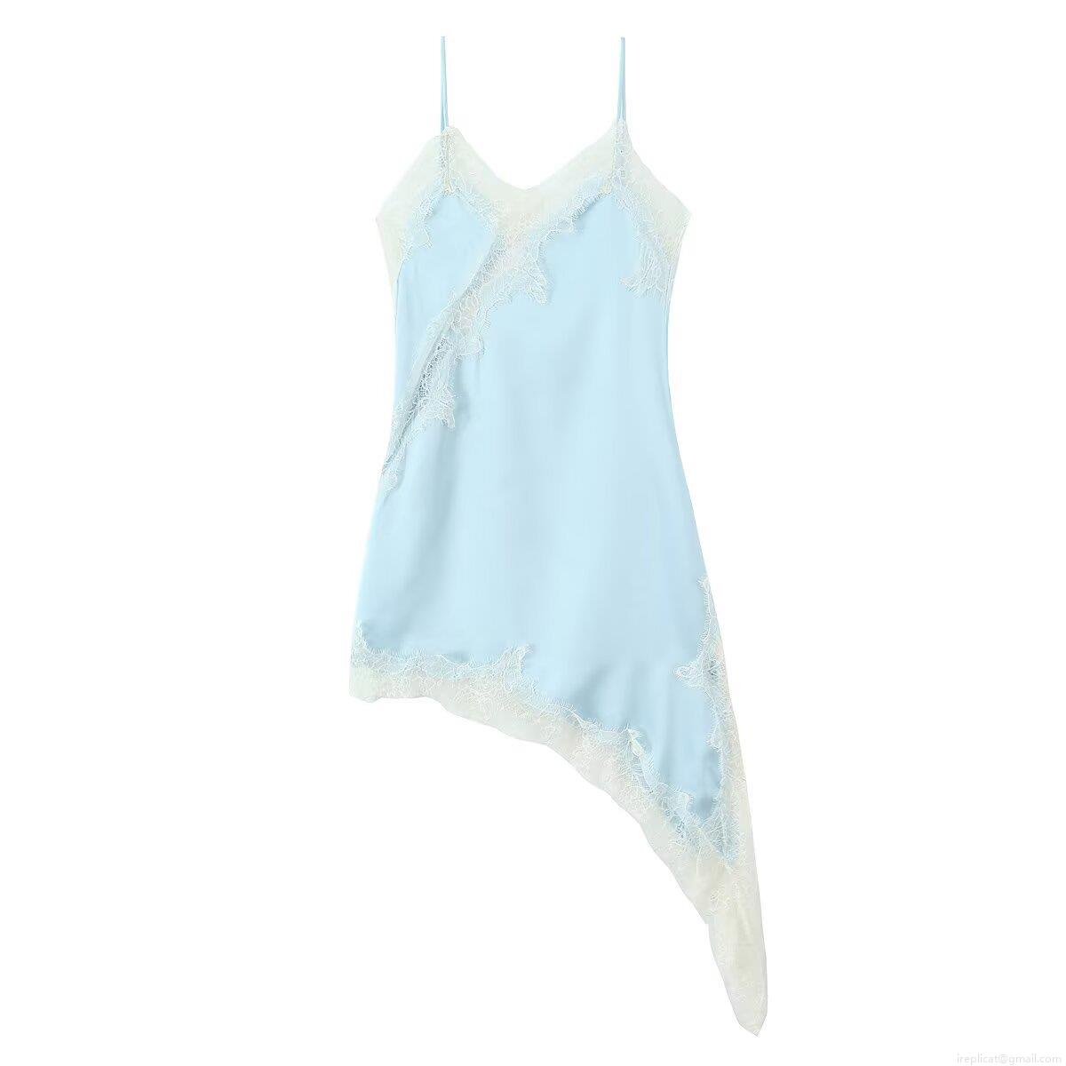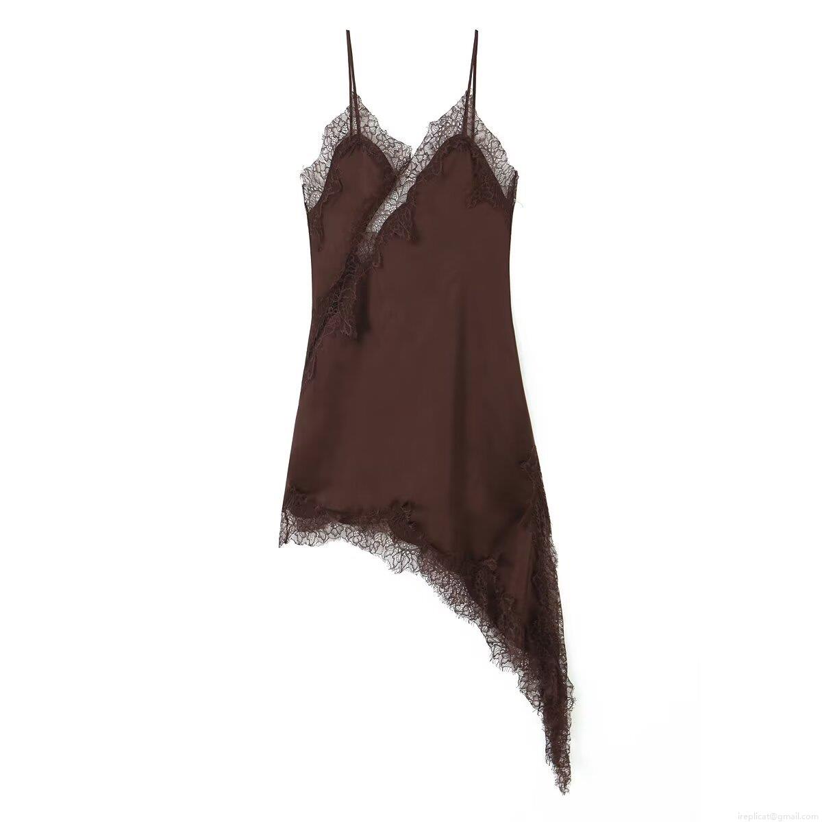 Solid Color, Splice, V-neck, Lace Patchwork, Irregular Hem, Asymmetrical Hem