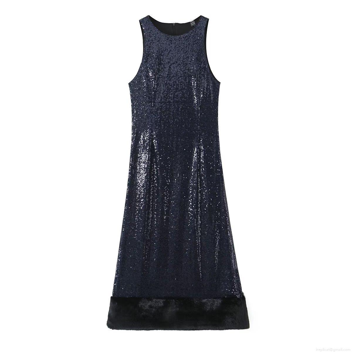 • Women's Sexy Sequin Sleeveless Maxi Dress With Faux Fur Trim Backless Elegant Evening Party Celebrity Style Nightclub Sequin Polyester Long Dress