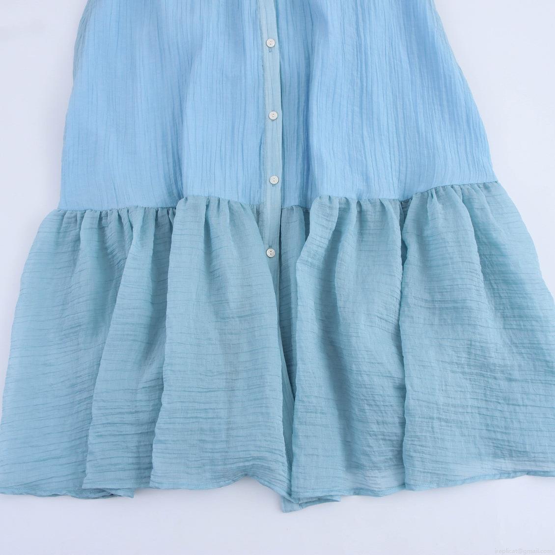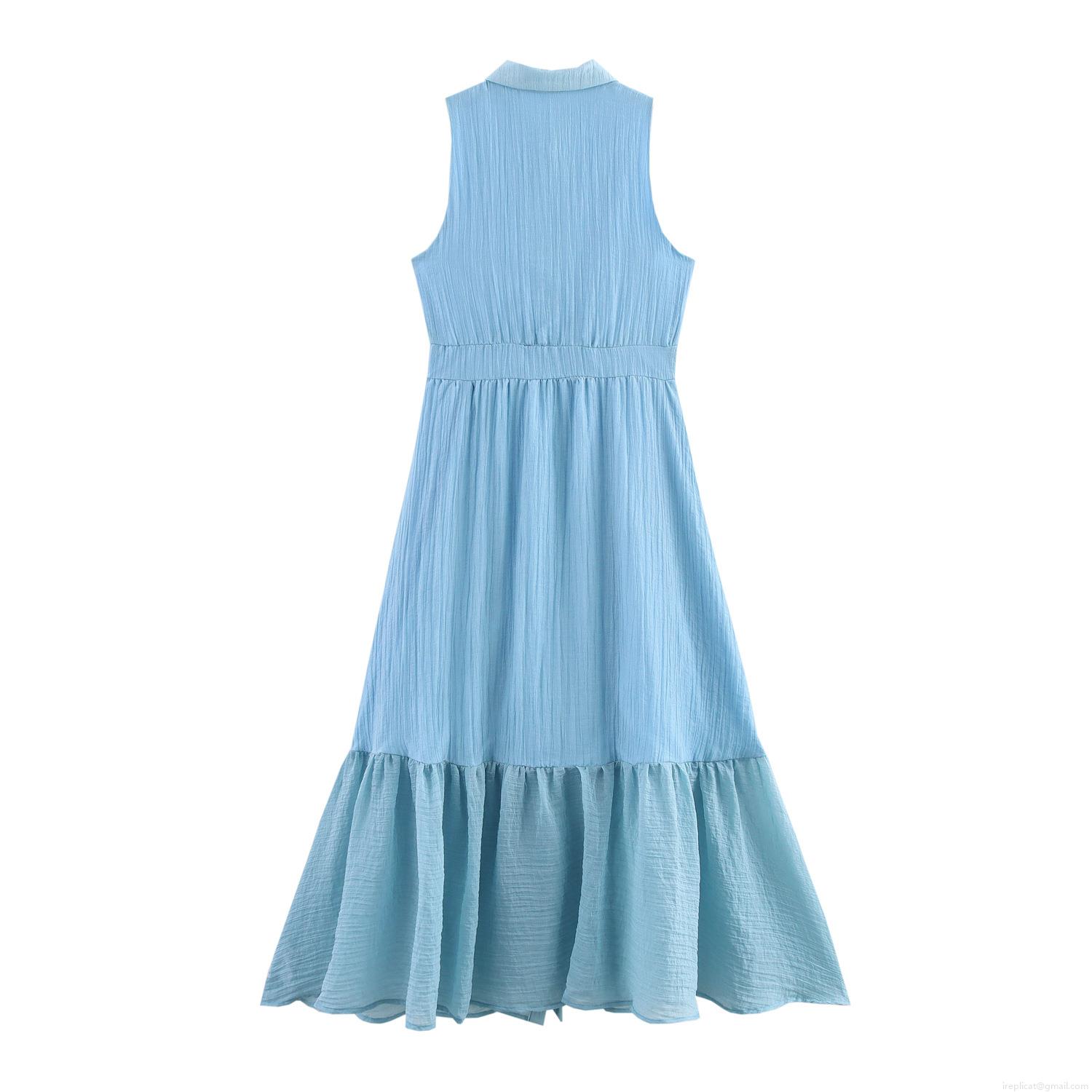 • Women's Sleeveless Shirt Dress Elegant Pleated Ruffled Hem Maxi Dress Single Breasted Sky Blue Summer Commuter Long Dress for Ladies