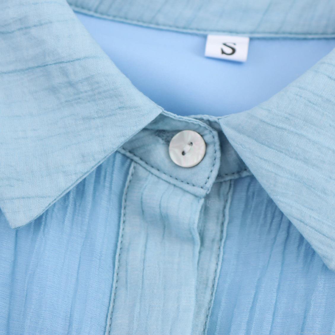 Women's Sleeveless Shirt Dress Elegant Pleated Ruffled Hem Maxi Dress Single Breasted Sky Blue Summer Commuter Long Dress for Ladies