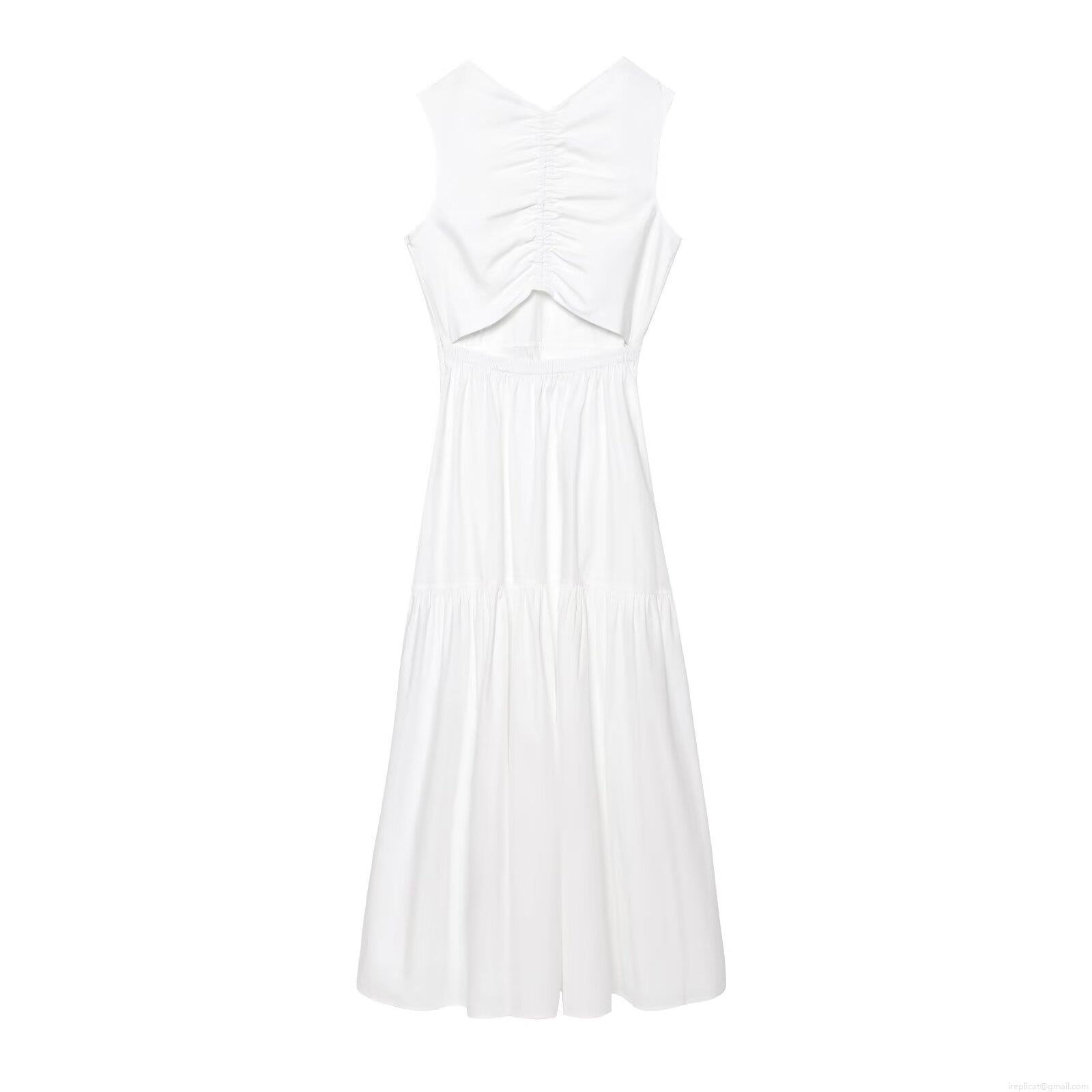 • Women's Sleeveless V-Neck Backless Maxi Dress Elegant White Tiered Cake Dress for Summer Beach Party Vacation