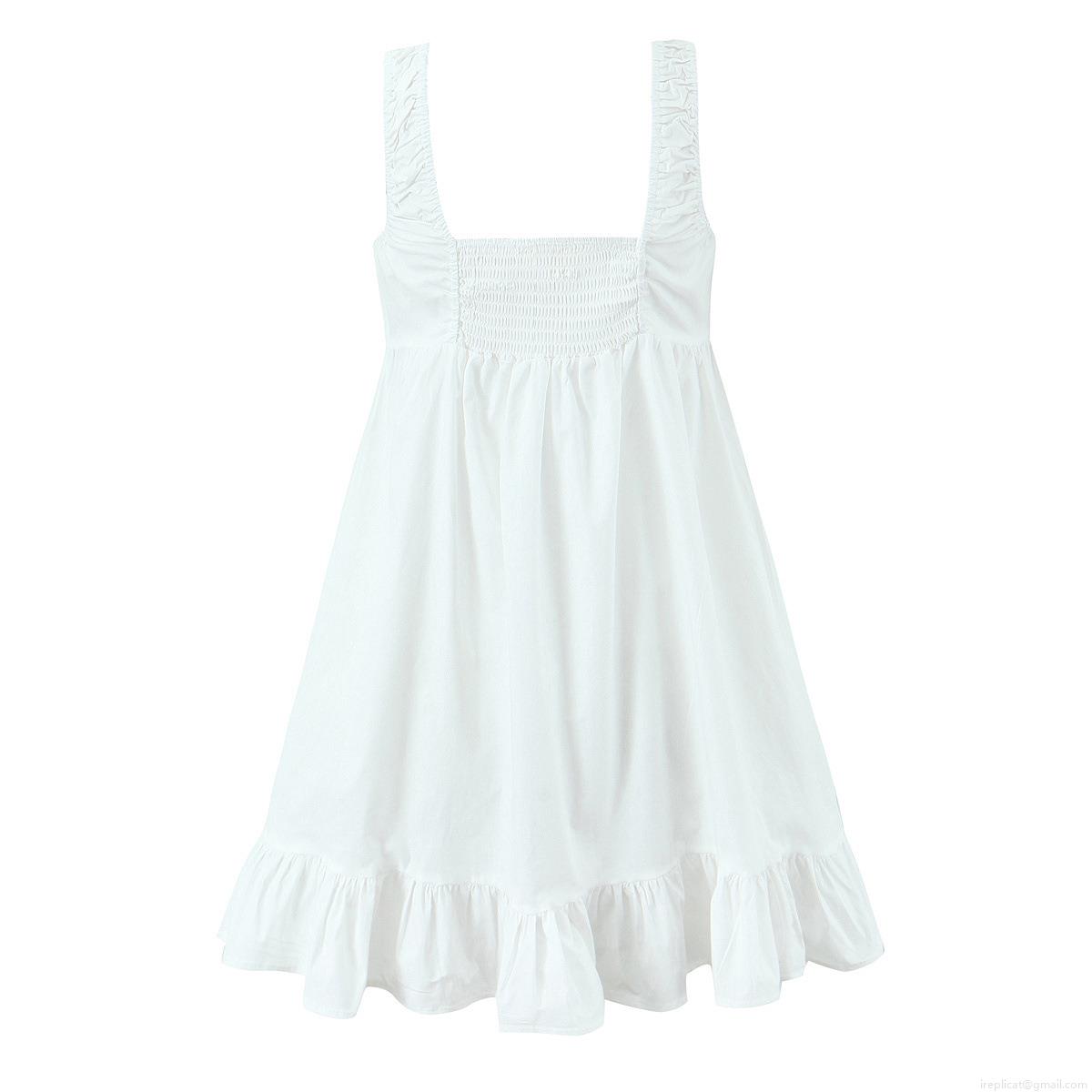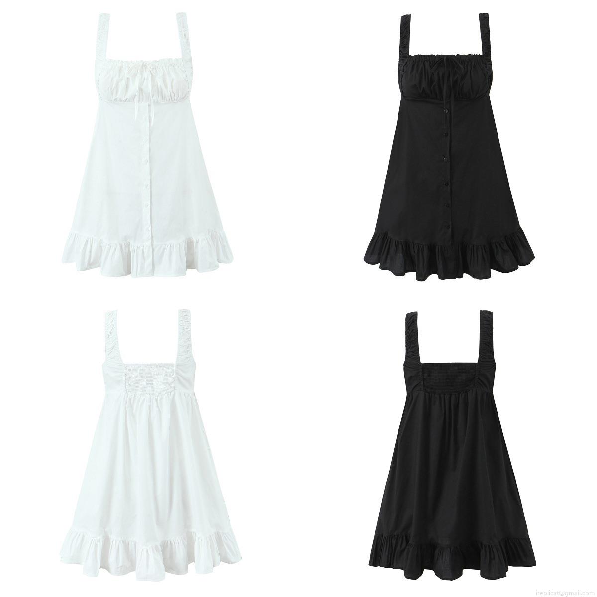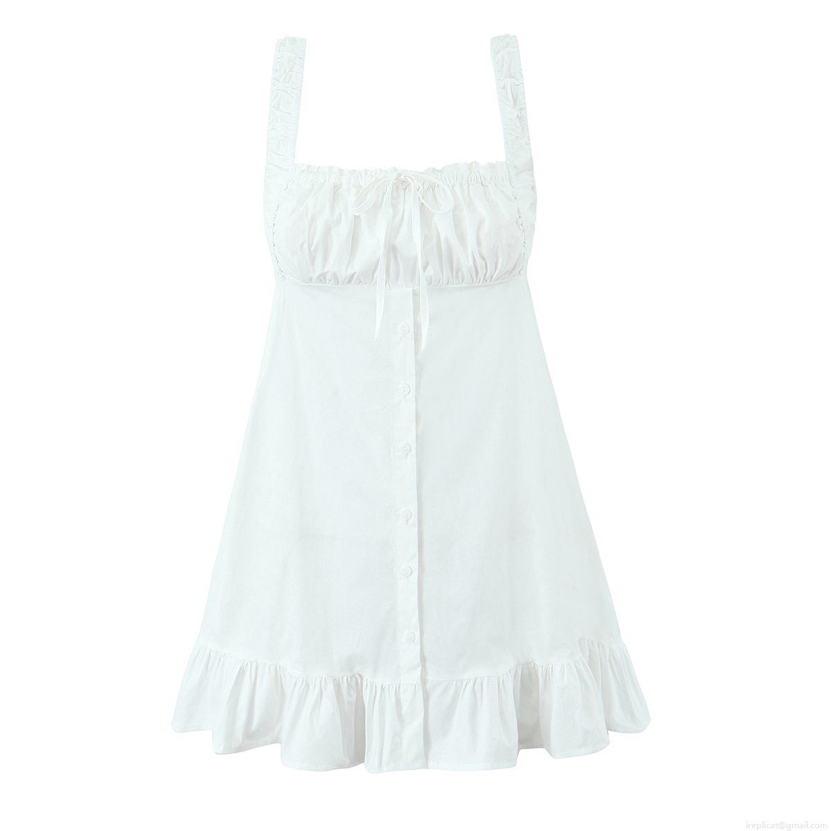 • Women's Spaghetti Strap Mini Dress Ruched Drawstring Square Neck Button Front A-Line Ruffle Hem Polyester Cotton Blend Sleeveless Short Dress For Summer Beach Party Dating