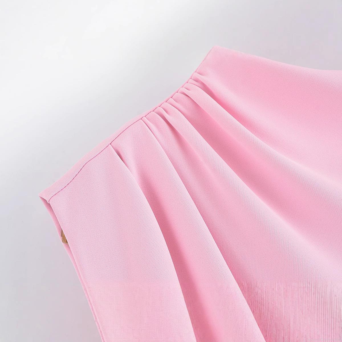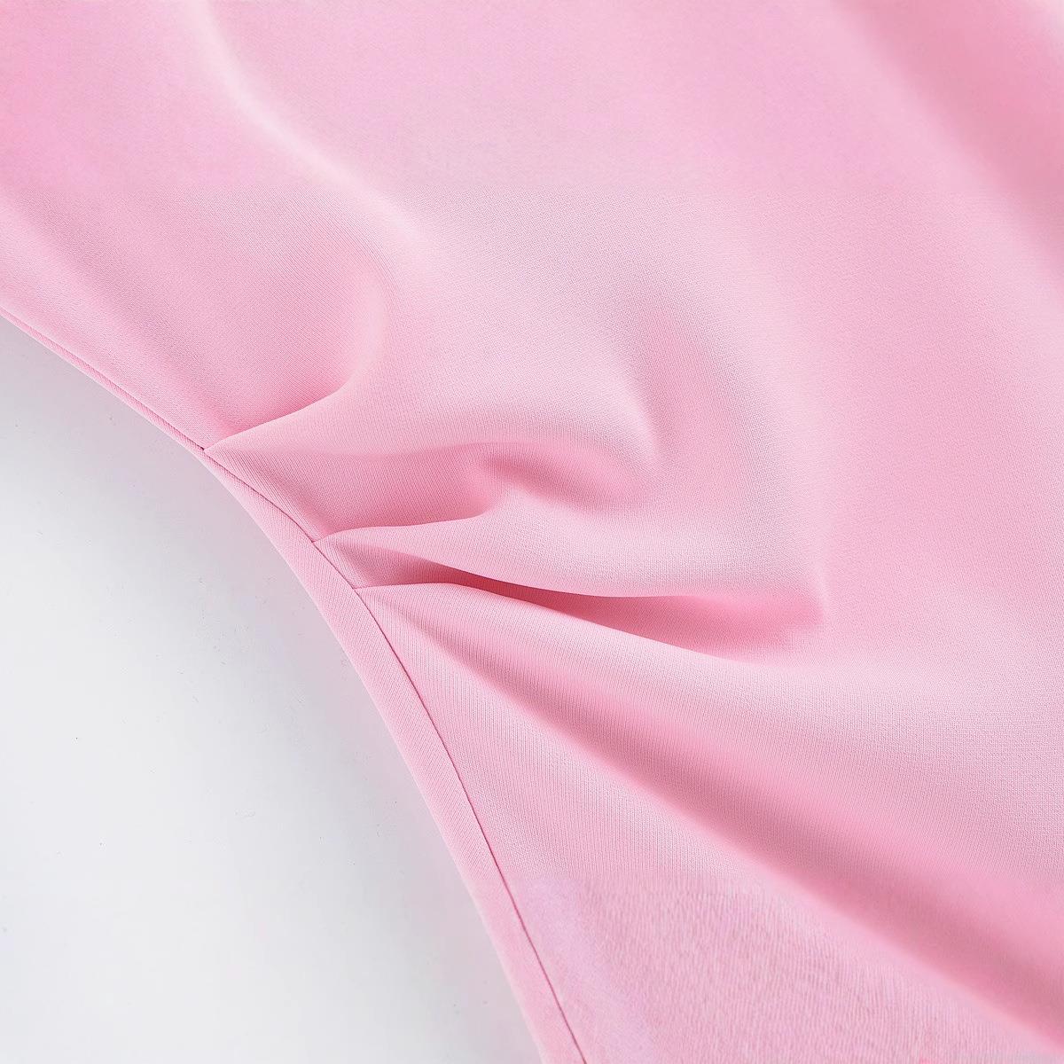 • Women's Summer Pink Crepe Sleeveless Mini Dress Fashion Pleated Draped Round Neck Slim Fit Bodycon Party Dress For Women Elegant Streetwear