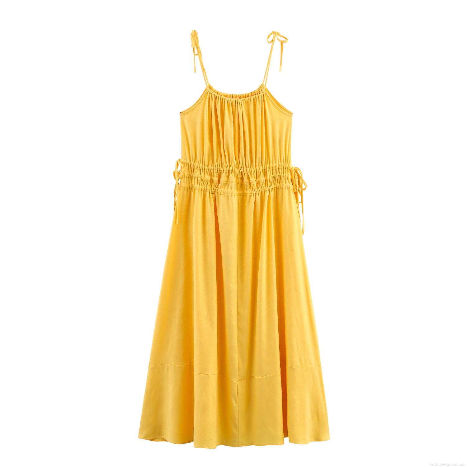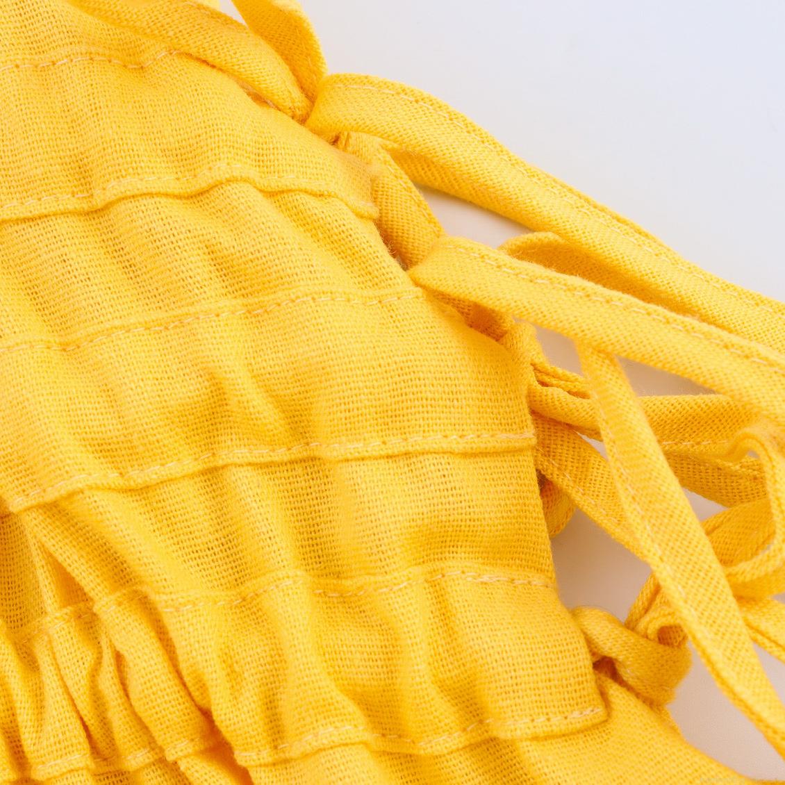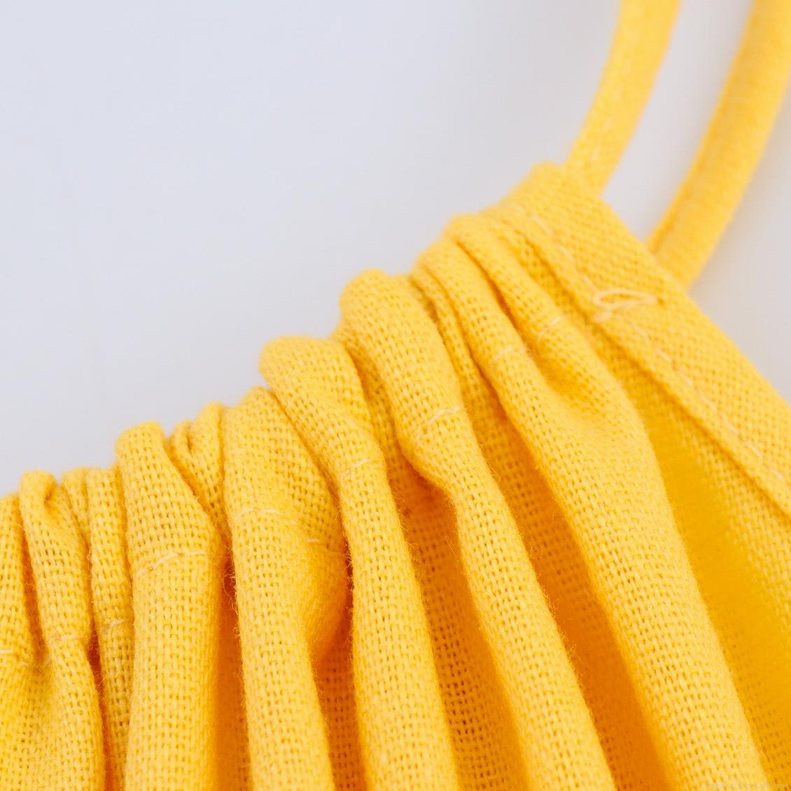 • Women's Vacation Maxi Dress Faux Linen Polyester Solid Yellow Smocked High Waist Adjustable Tie Strap Sleeveless Long Dress For Beach Summer Party Elegant Lady