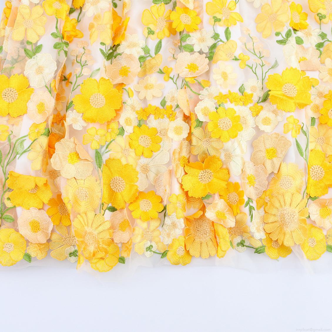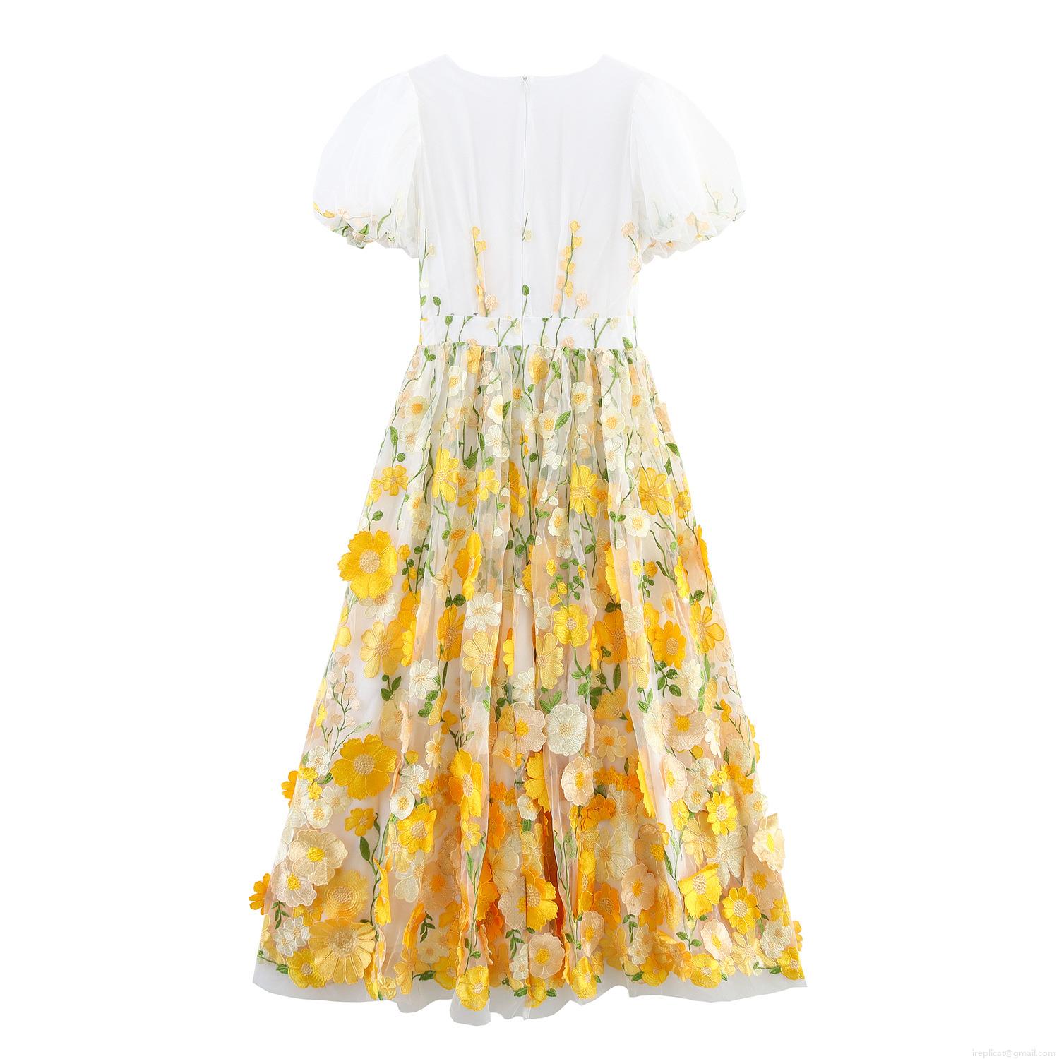 • Elegant 3D Floral Embroidery Mesh Maxi Dress V-Neck Puff Short Sleeve High Waist A-Line Party Gown For Women