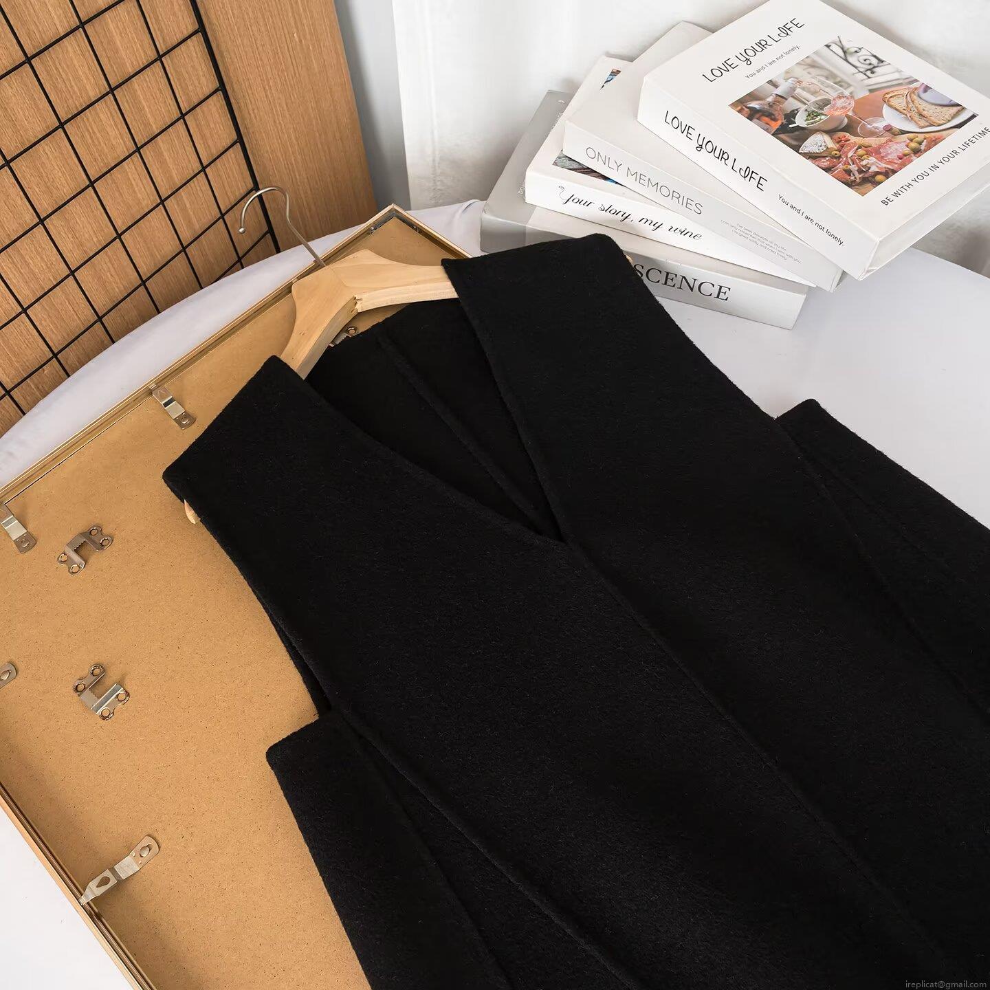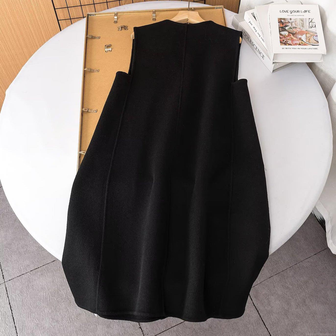 • Elegant Black Sleeveless V-Neck Midi Dress Wool-Like Polyester Spandex Straight A-Line With Pockets Autumn Winter Casual Commuting Fashion For Women