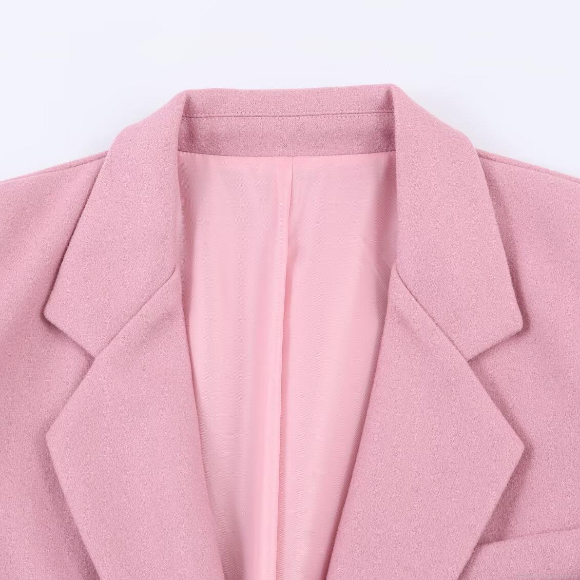 • Elegant Pink Women's Oversized Notched Lapel Blazer Jacket Commuter Solid Color Single Breasted Long Sleeve Woolen Texture Outerwear Suit Coat