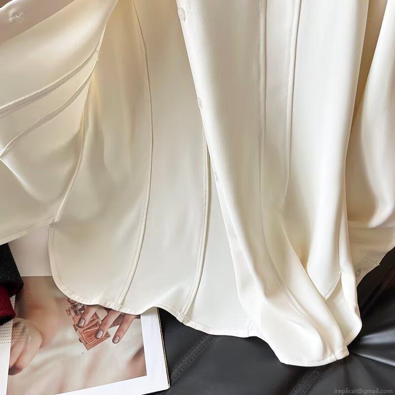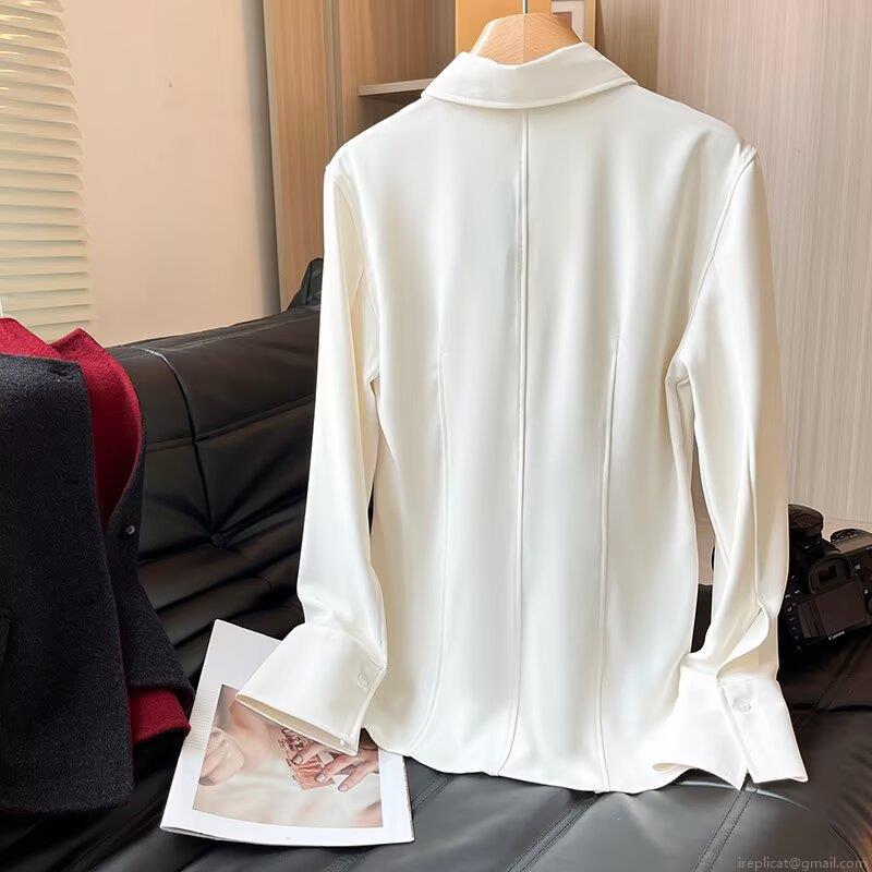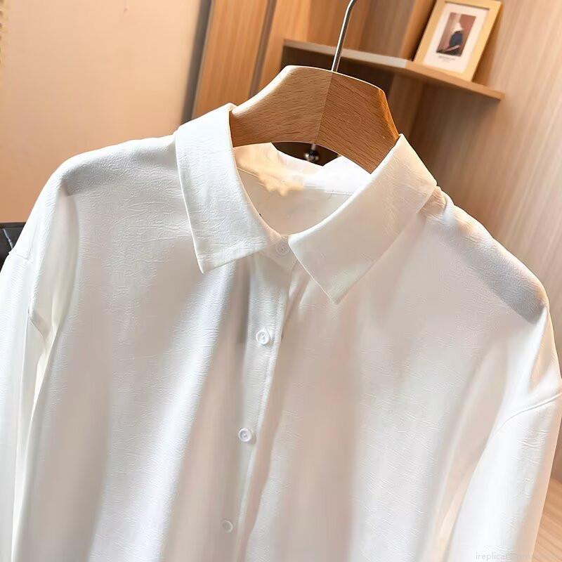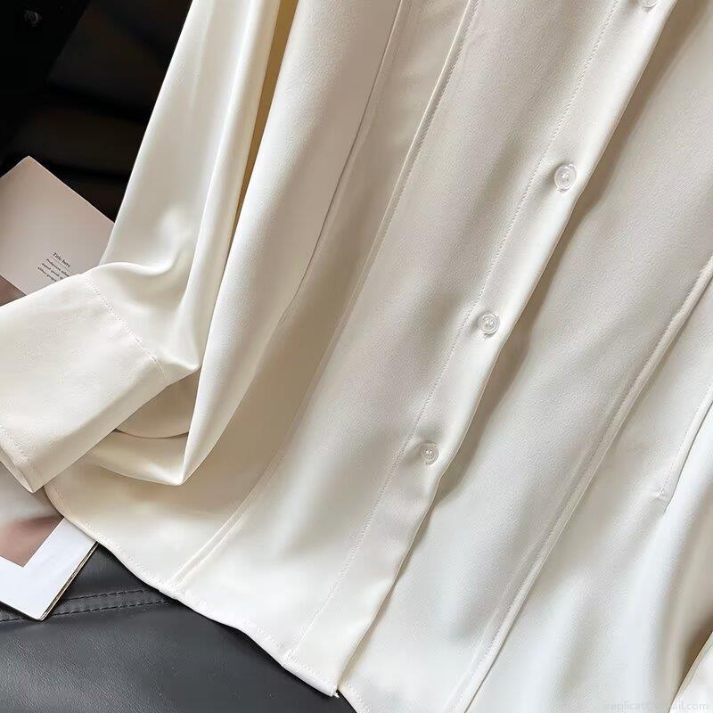 • Elegant White Viscose Spandex Blouse Women Long Sleeve Shirt Commute Slim Fit Lapel Collar Single Breasted Office Work Wear Formal Plain Basic Top
