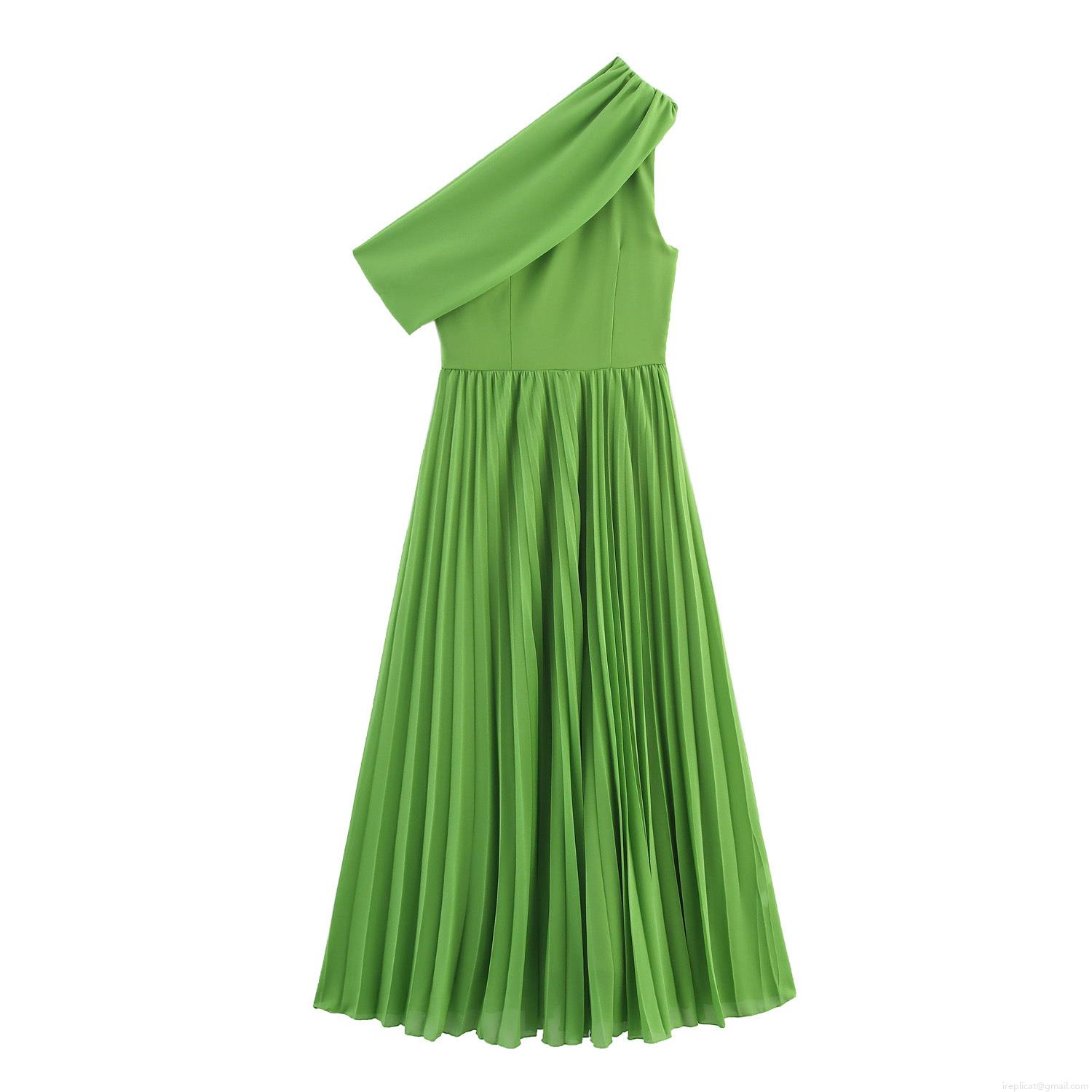 • Elegant Women's One-Shoulder Pleated Maxi Dress Vintage High Waist Sleeveless Polyester Solid Color Evening Gown For Wedding Party