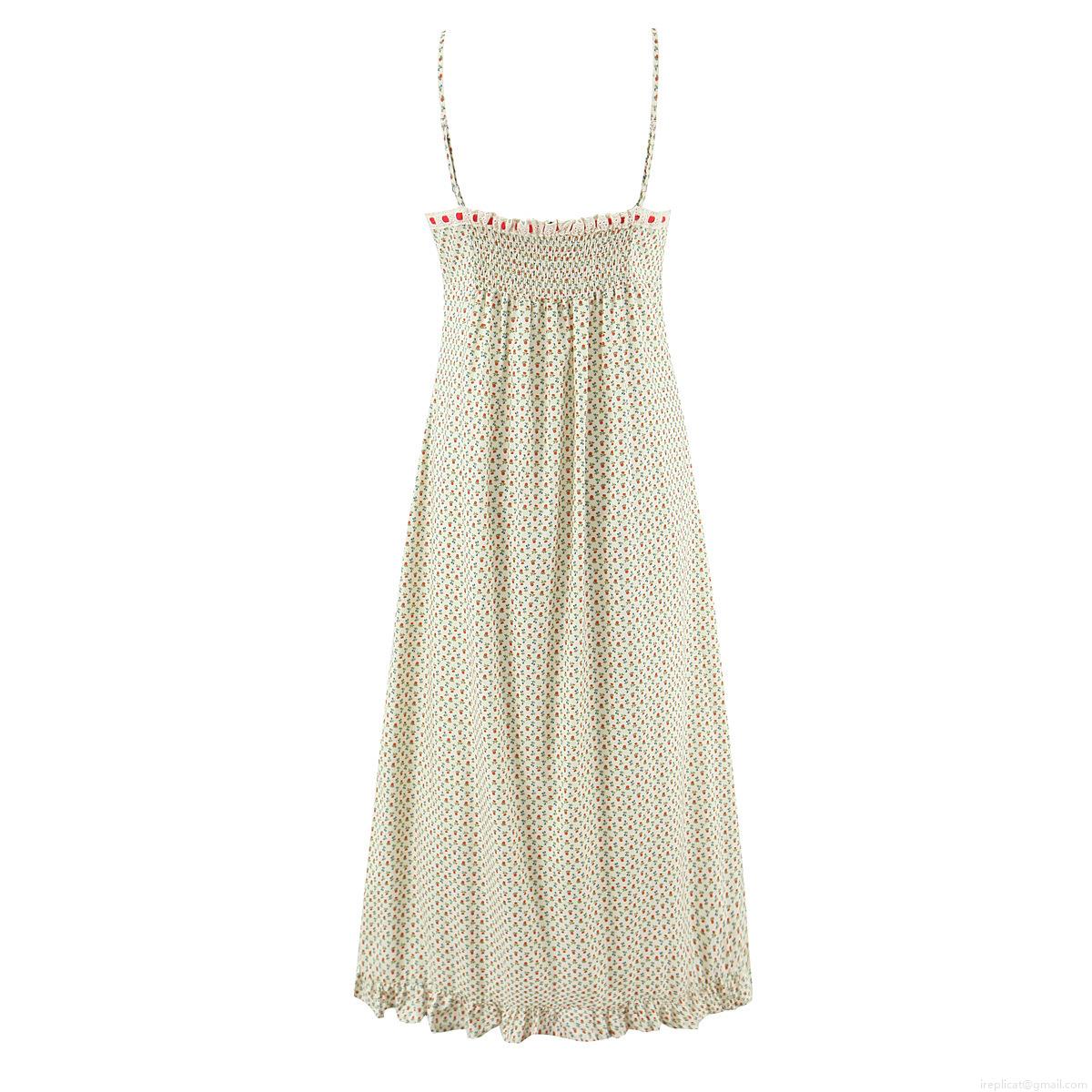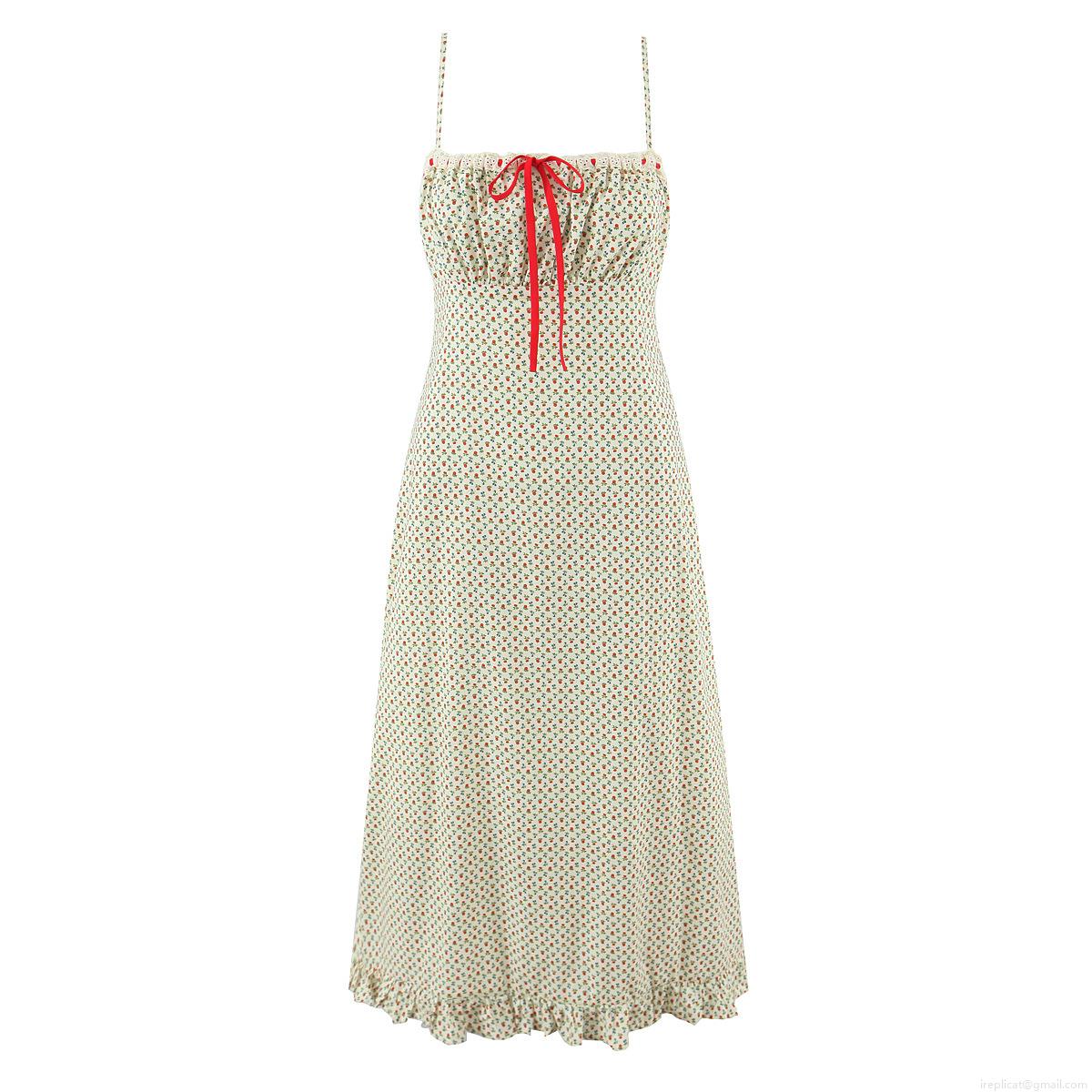 • Fashion Floral Spaghetti Strap Dress Sexy Bow Decor Ruffle Hem Cottagecore Cotton Midi Dress for Women Summer Vacation Casual Sundress