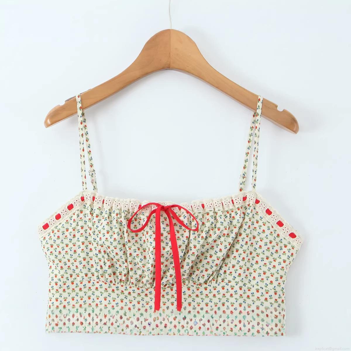 Fashion Floral Spaghetti Strap Dress Sexy Bow Decor Ruffle Hem Cottagecore Cotton Midi Dress for Women Summer Vacation Casual Sundress