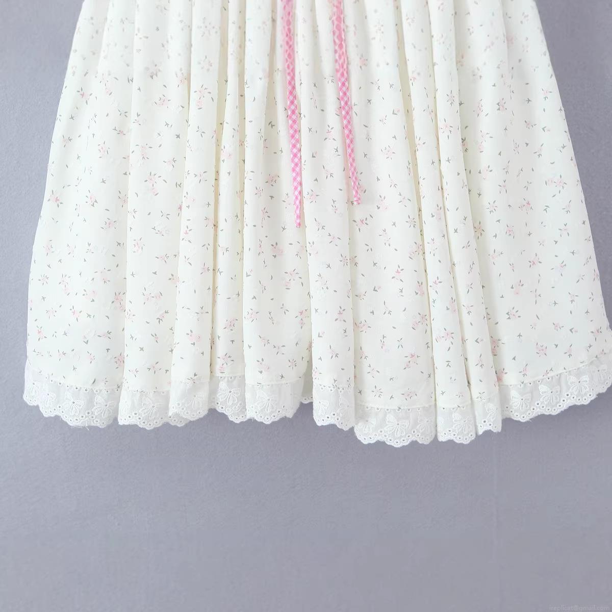 • French Retro Off Shoulder Floral Mini Dress With Fishbone Corset Lace Trim Puff Sleeve Cotton Blend For Women Summer Vacation Cottagecore Style Sweet A-line Pullover Short Sleeve Dress