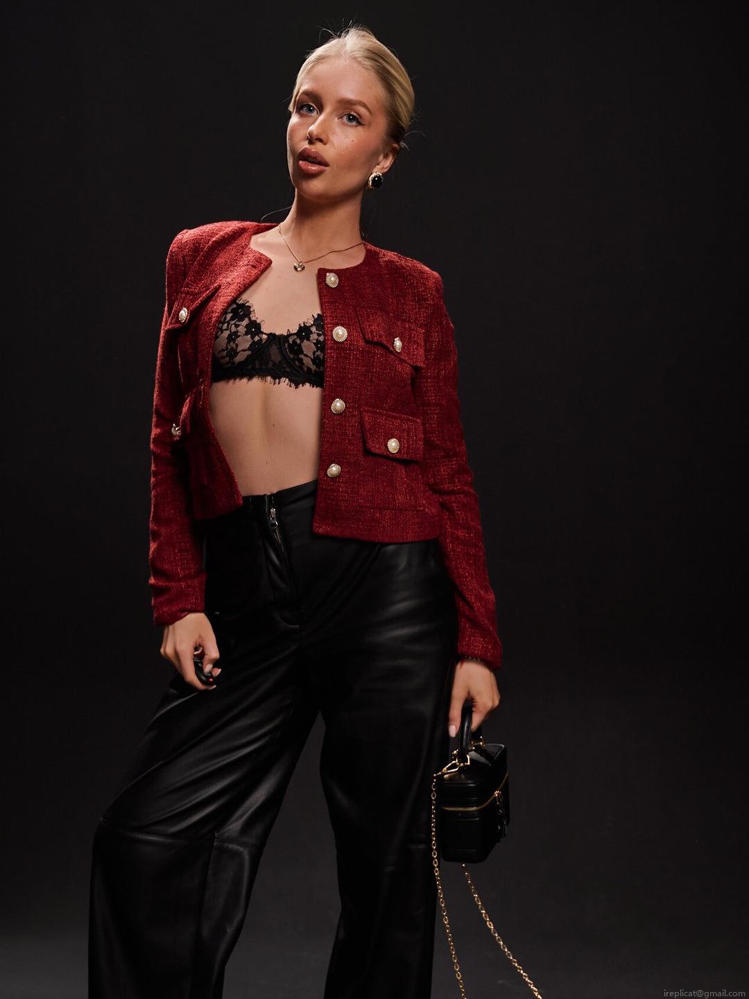 French Vintage Wine Red Tweed Jacket Women Elegant Round Neck Long Sleeve Short Coat With Pearl Buttons Slim Fit Cotton Linen Outerwear For Office Party Spring Summer 2025 New Fashion Top