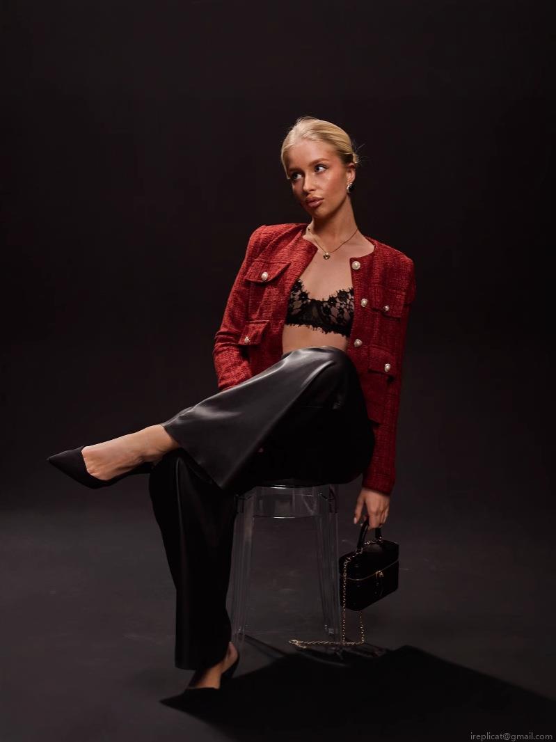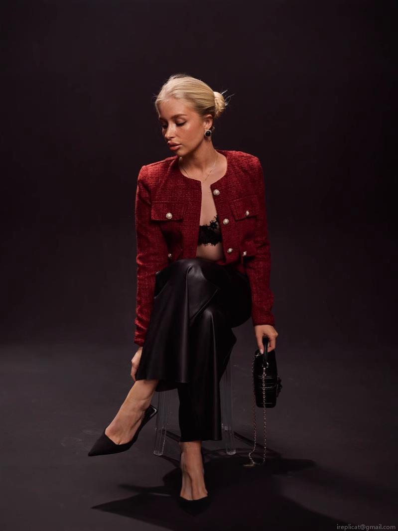 • French Vintage Wine Red Tweed Jacket Women Elegant Round Neck Long Sleeve Short Coat With Pearl Buttons Slim Fit Cotton Linen Outerwear For Office Party Spring Summer 2025 New Fashion Top