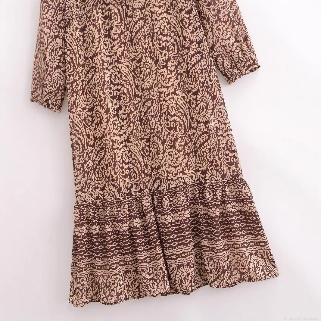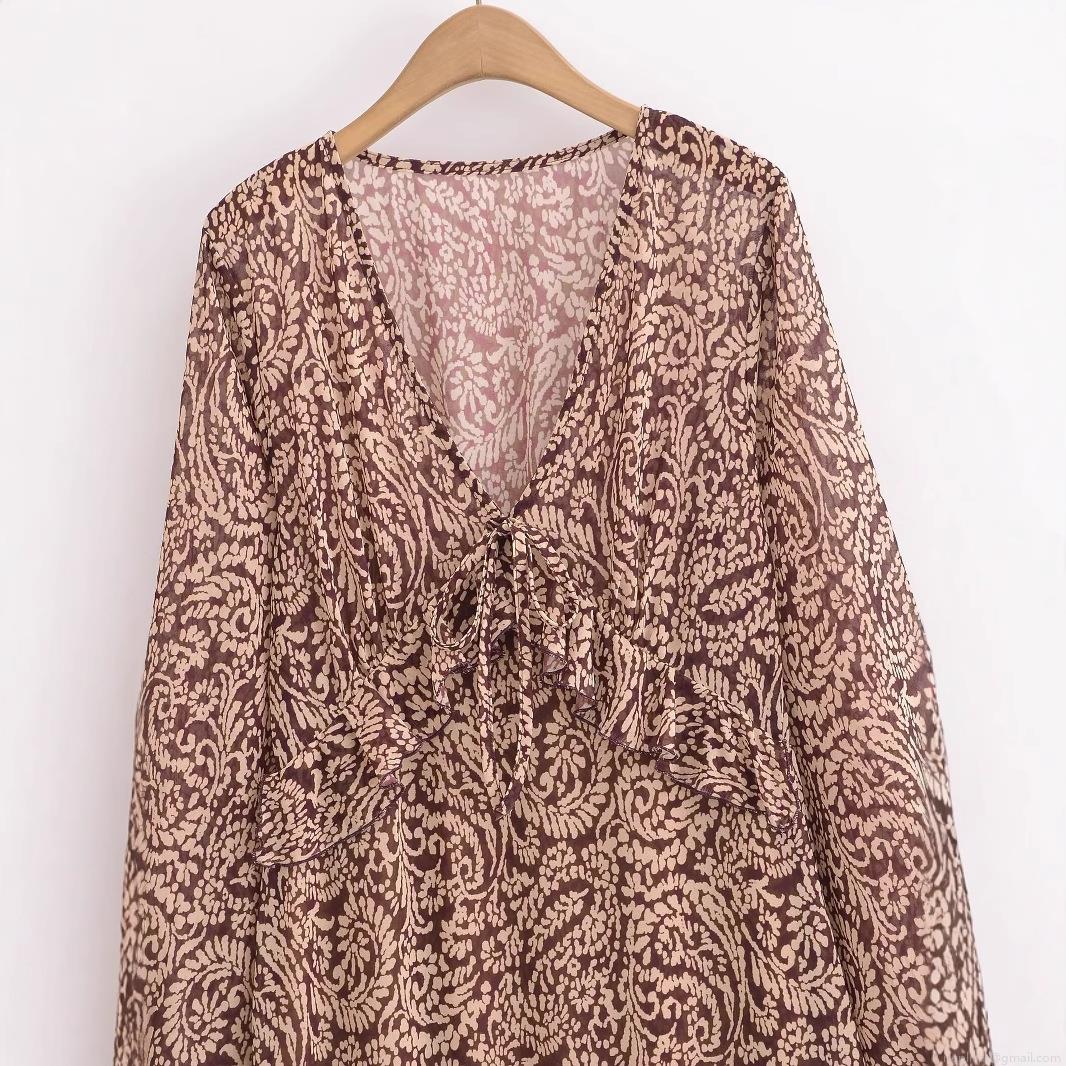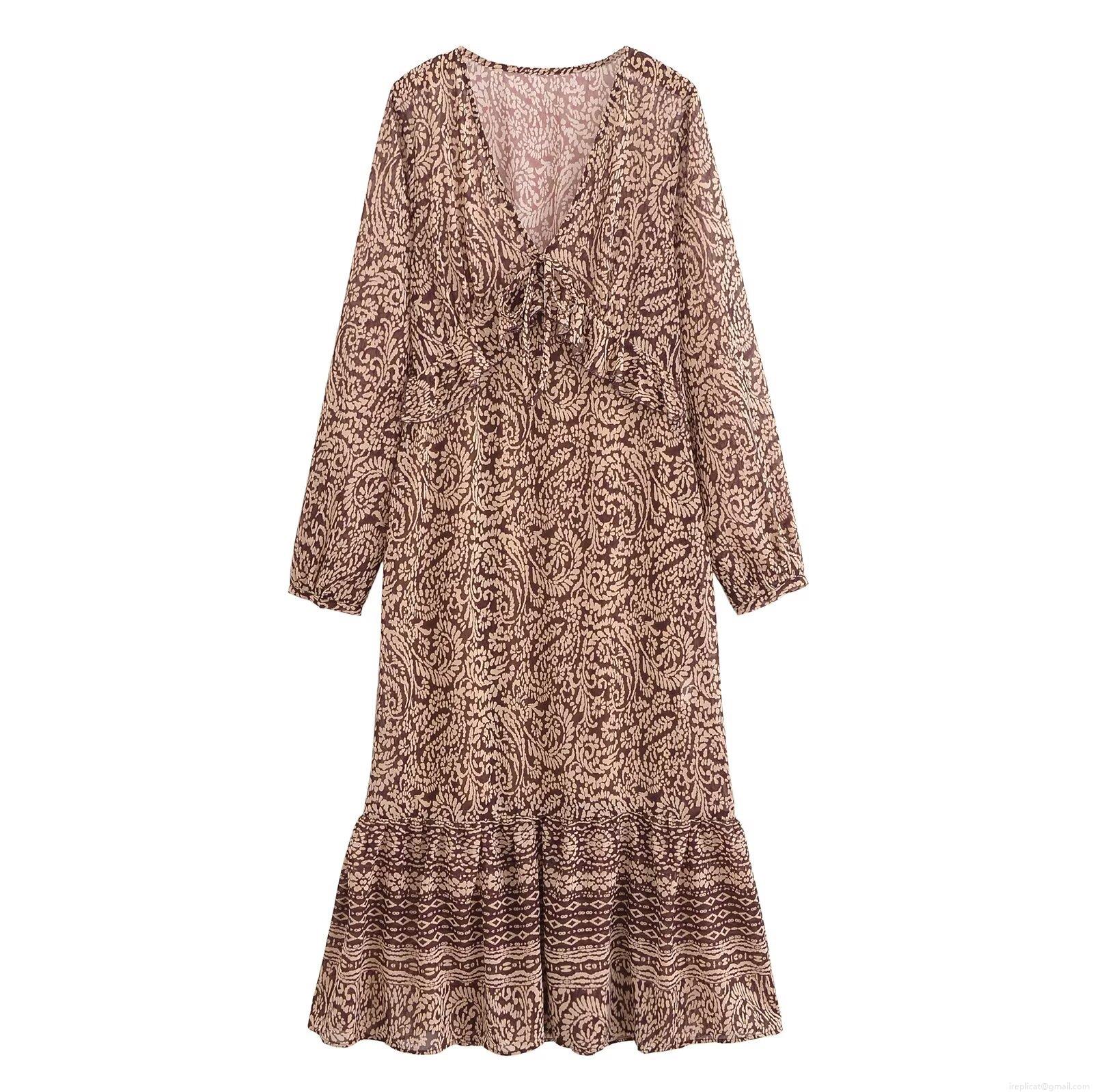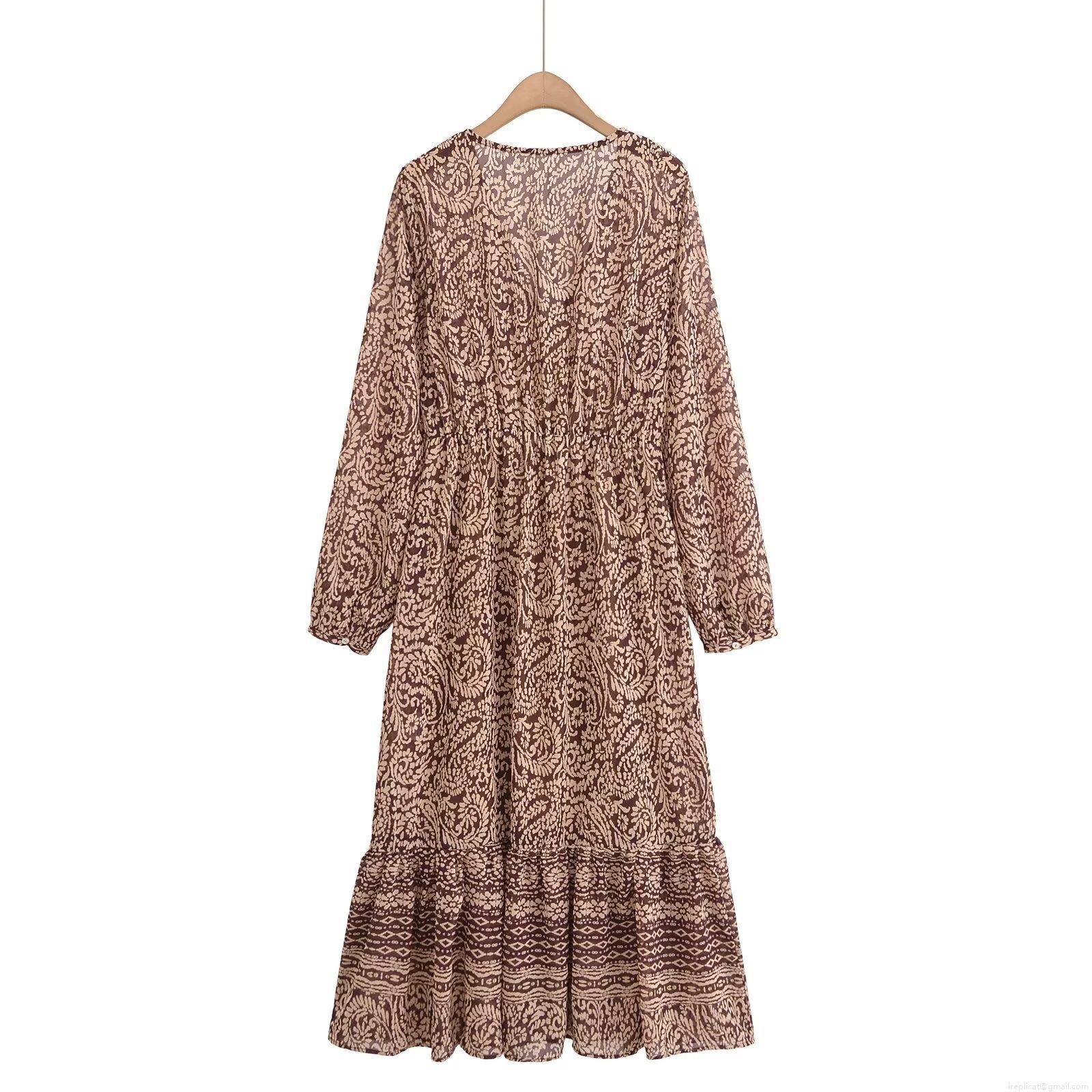 • Bohemian Maxi Dress Long Sleeve V Neck Polyester Chiffon Paisley Print Ruffle Flowy Dress For Women Summer Beach Vacation Holiday Party Long Dress