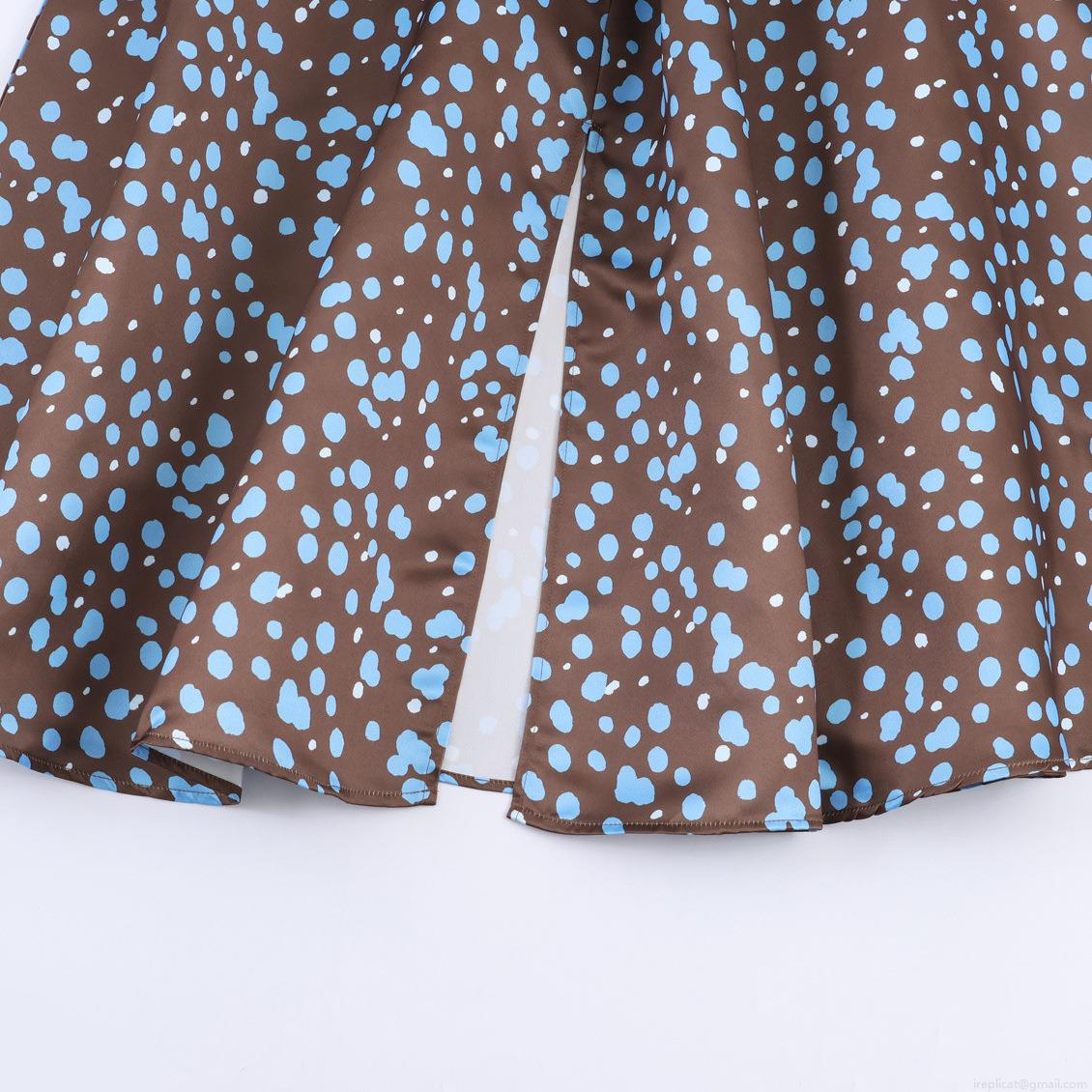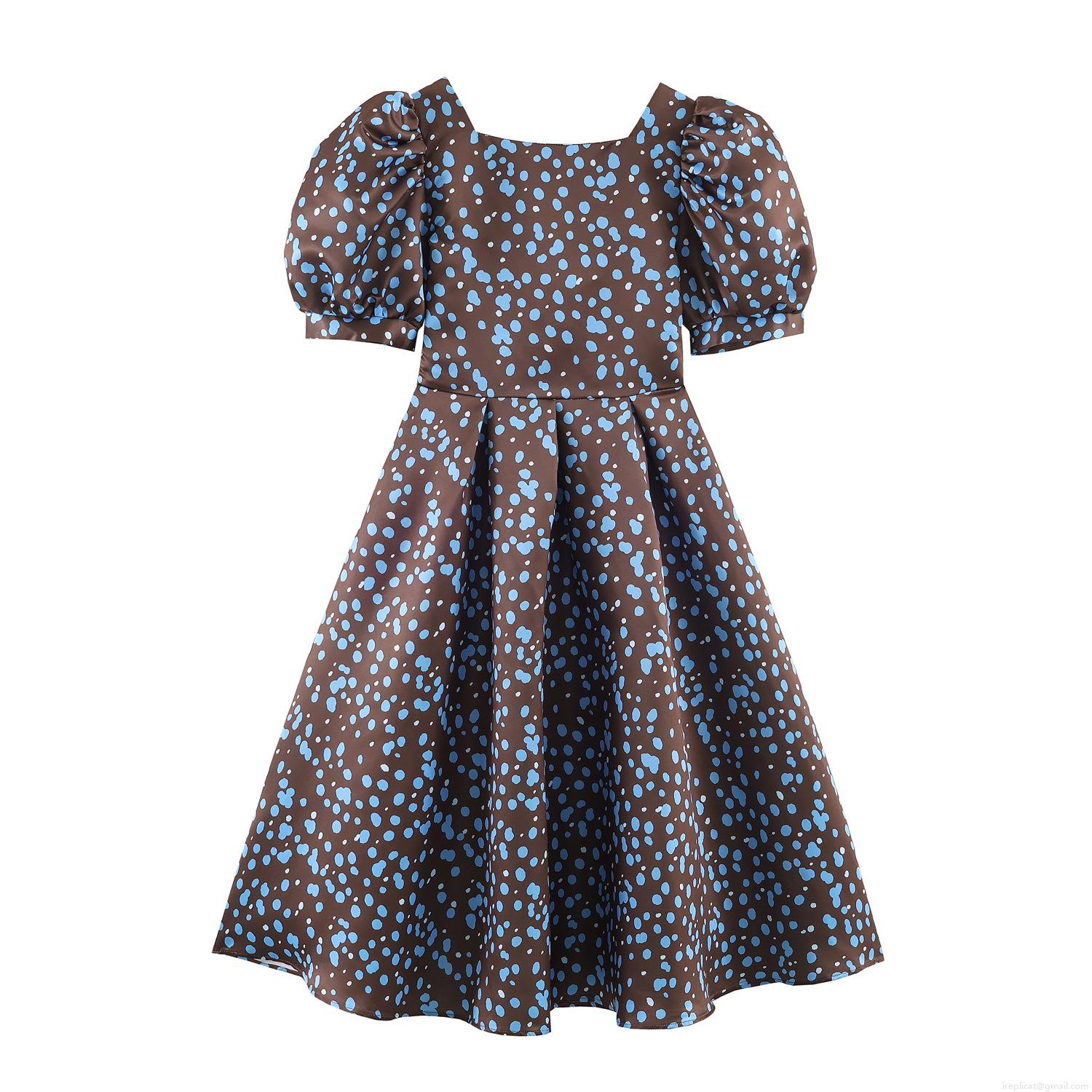 • Elegant Acetate Satin Polka Dot Maxi Dress For Women Retro Square Neck Puff Sleeve Party Long Dress With Slit And Pearl Buttons
