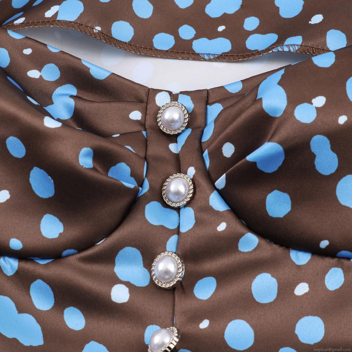 Polka Dots, Pearl Buttons, Hollow Out, Slit, Puff Sleeves
