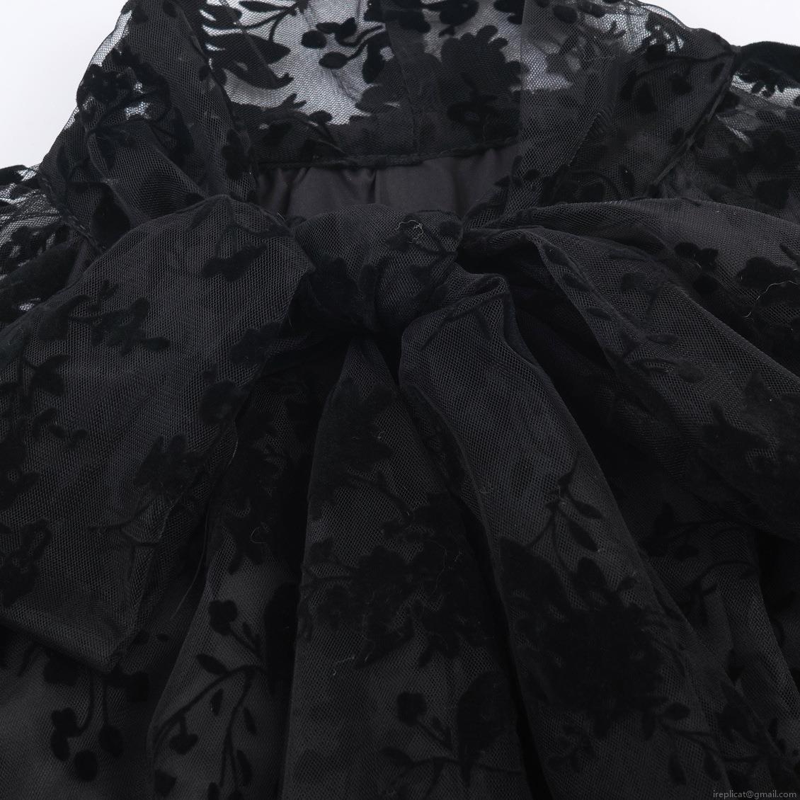 • Elegant Black Mesh Flocking Patchwork Maxi Dress For Women Vintage Long Sleeve Bow Tie Neck High Waist Pleated Evening Party Long Dress