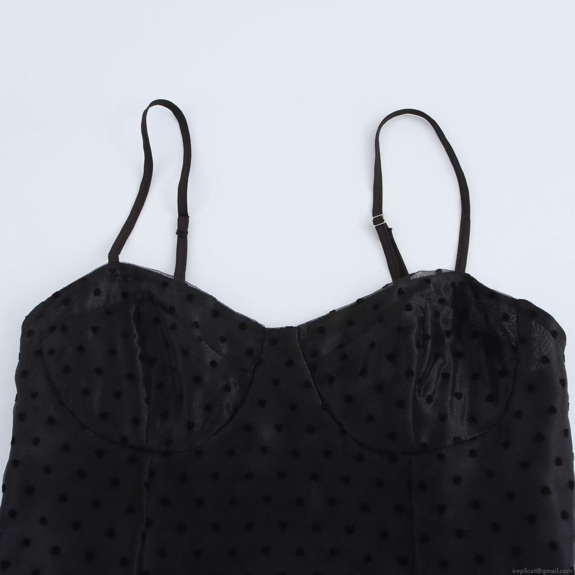 • Elegant Black Polka Dot Flocked Camisole Maxi Dress For Women Sexy High Waist Mesh Spaghetti Strap Party Long Dress With Adjustable Straps