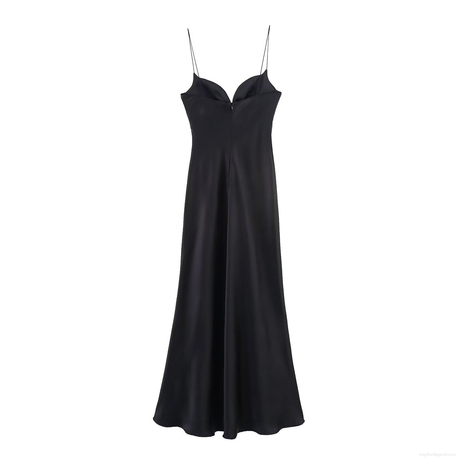 • Elegant Black Satin Sling Maxi Dress V-Neck Sleeveless Silk Texture Formal Evening Party Wedding Banquet Solid Color Minimalist For Women
