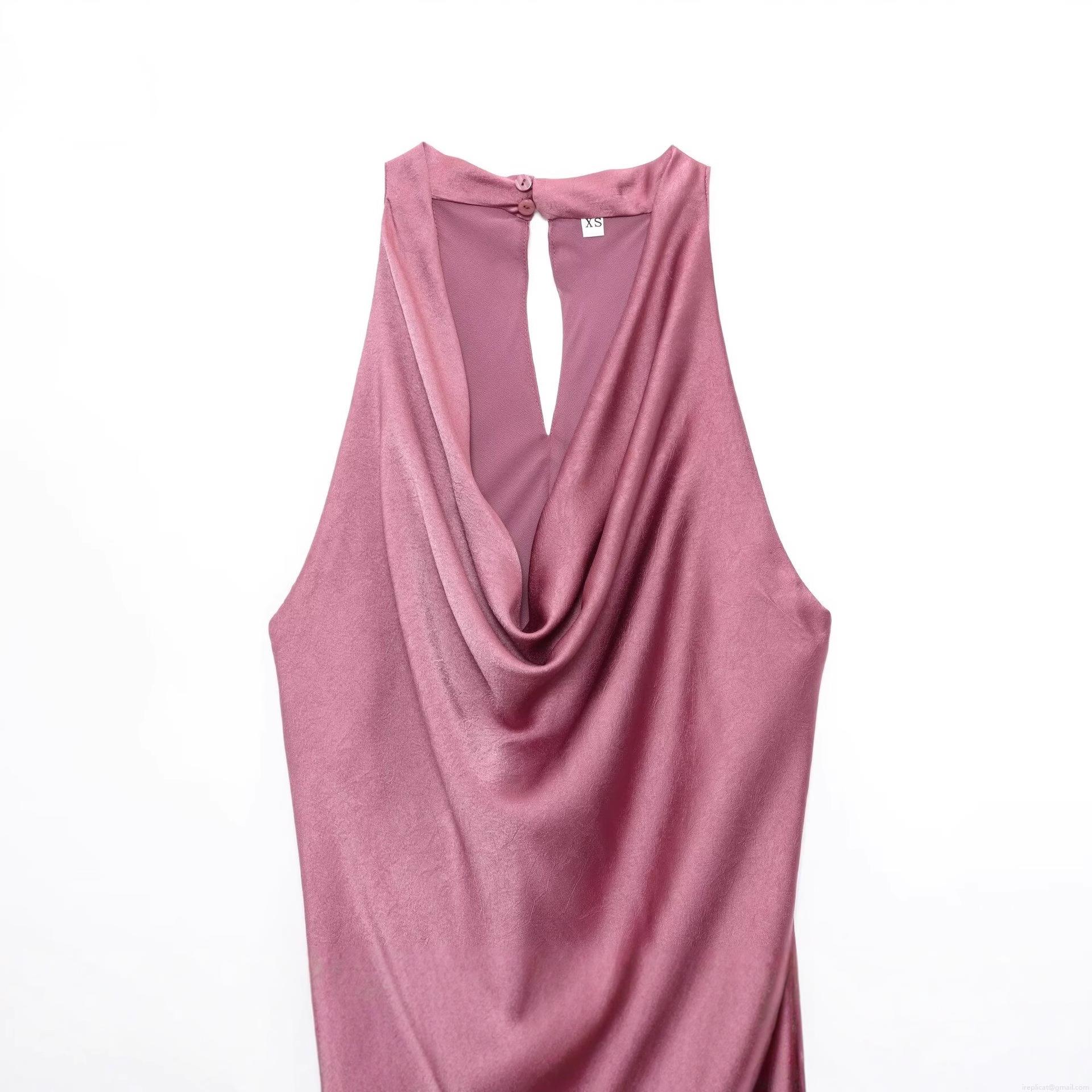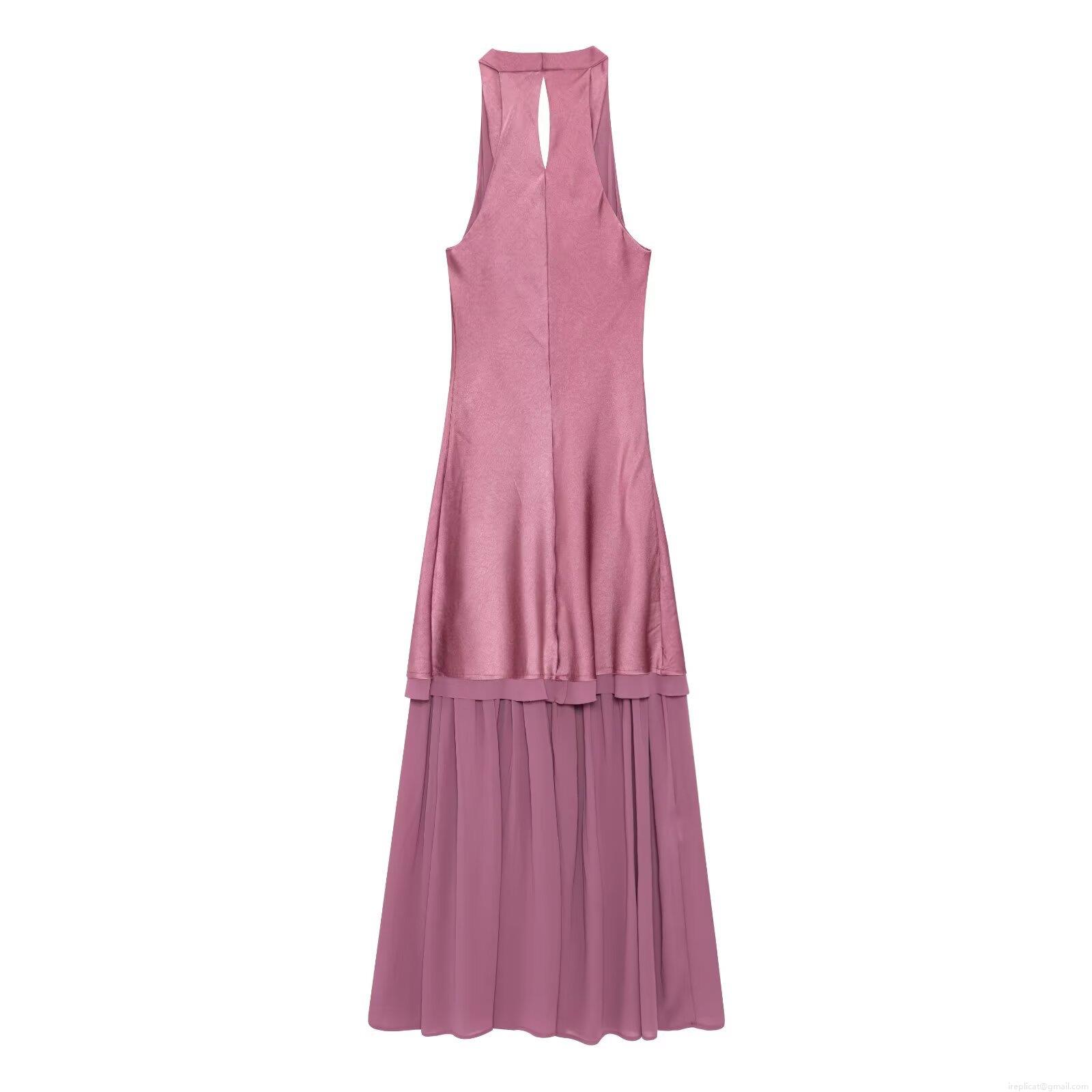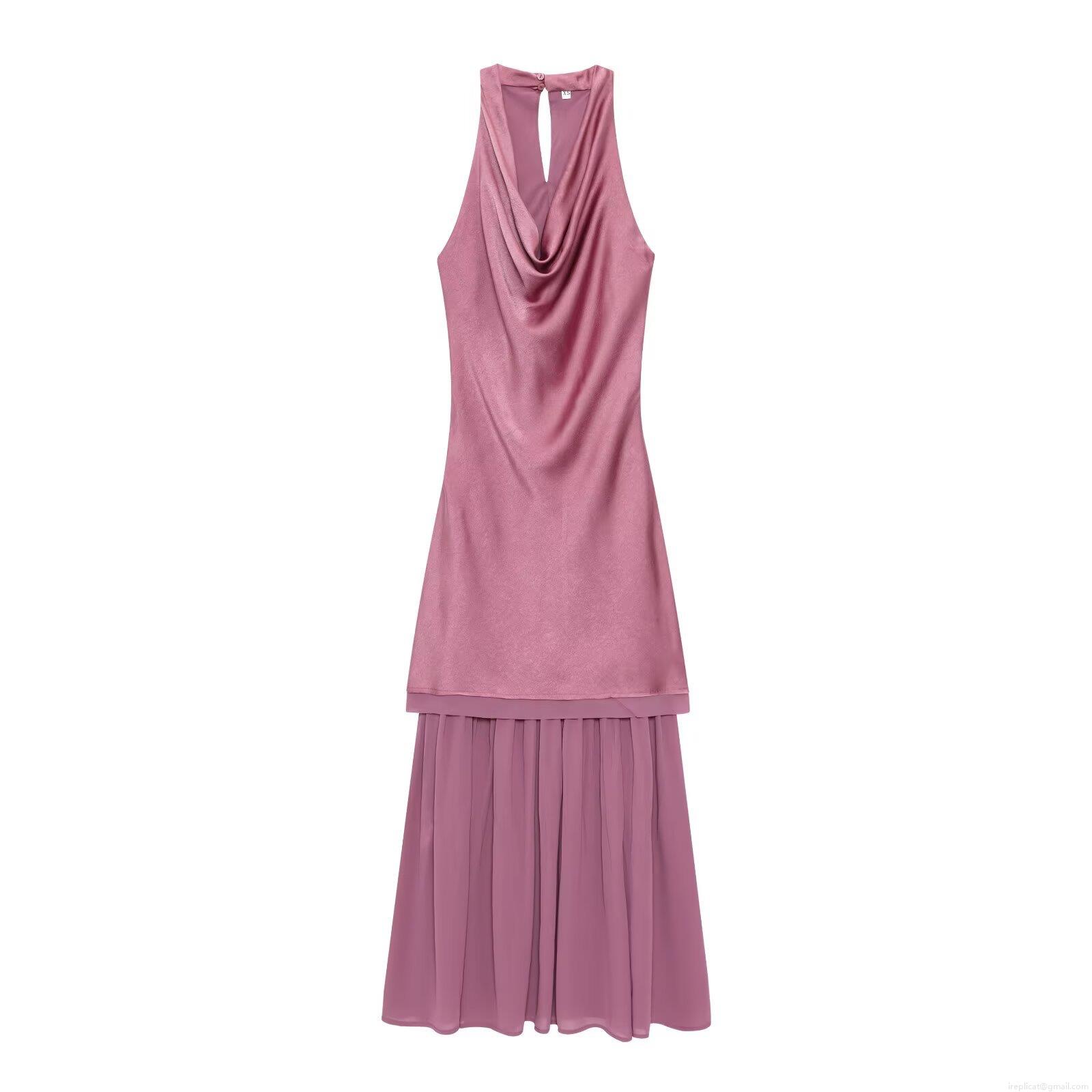 Elegant Cowl Neck Halter Backless Maxi Dress For Women Satin And Chiffon Spliced Formal Evening Party Long Gown Dusty Rose Wedding Guest Dress