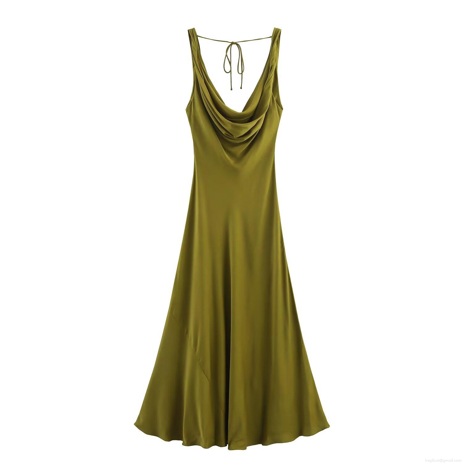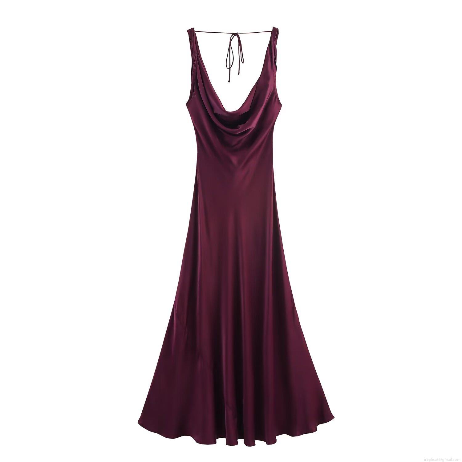 Elegant Cowl Neck Satin Slip Maxi Dress For Women Backless Tie Up Acetate Polyester Silky Sexy Long Dress For Evening Party Wedding Guest