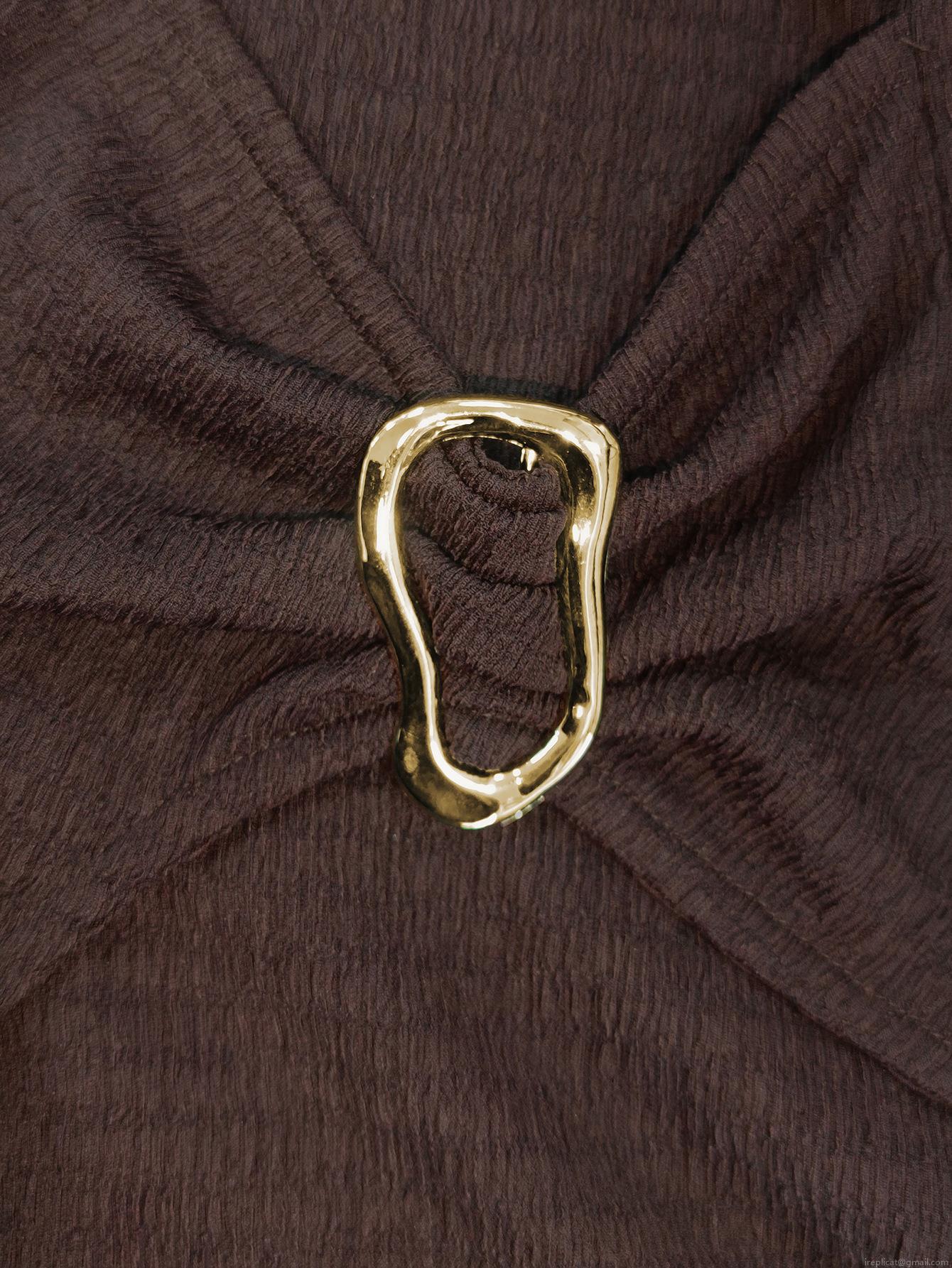 Solid Color, Side Fork, Metal Ring Decoration, Pleating Process, Texture Folds