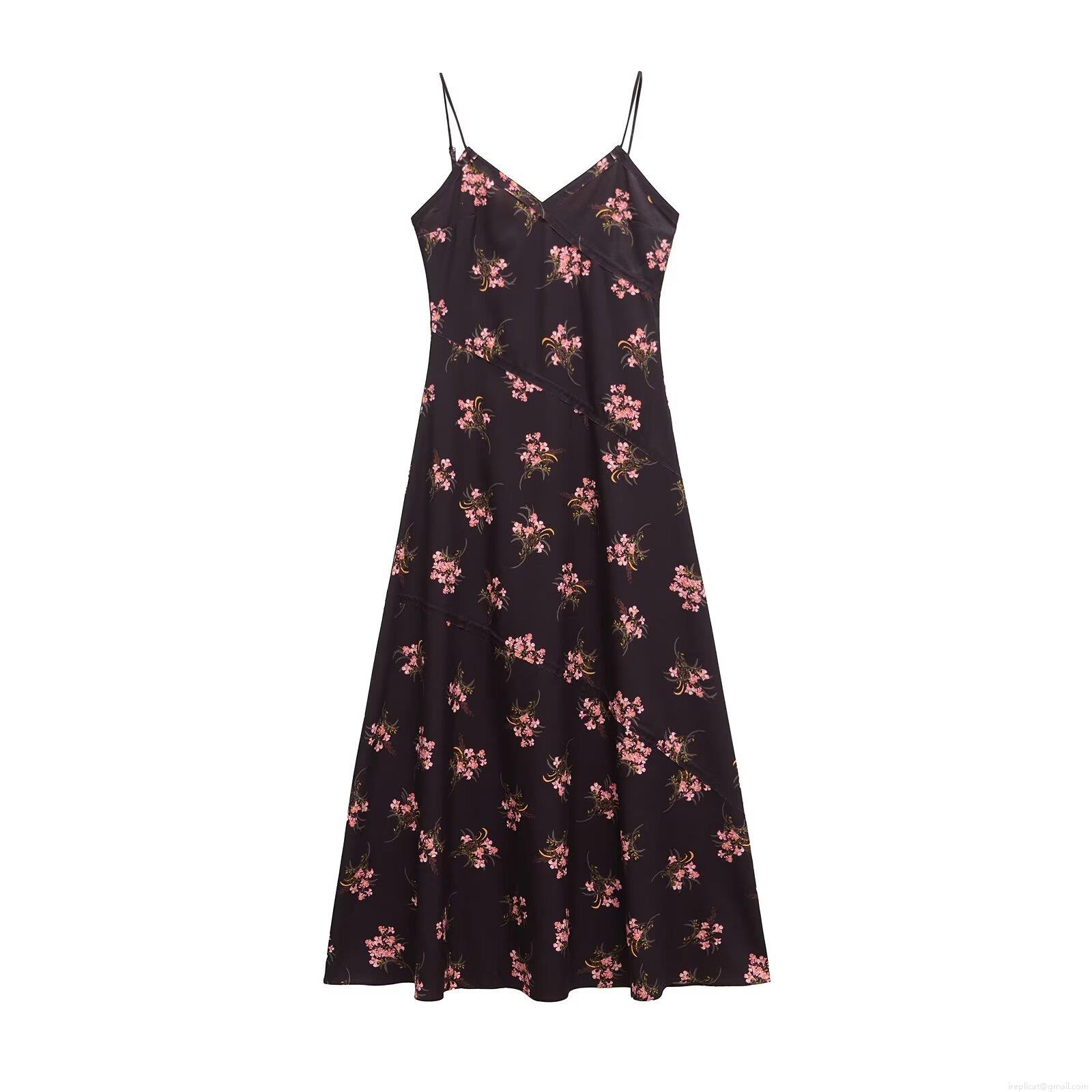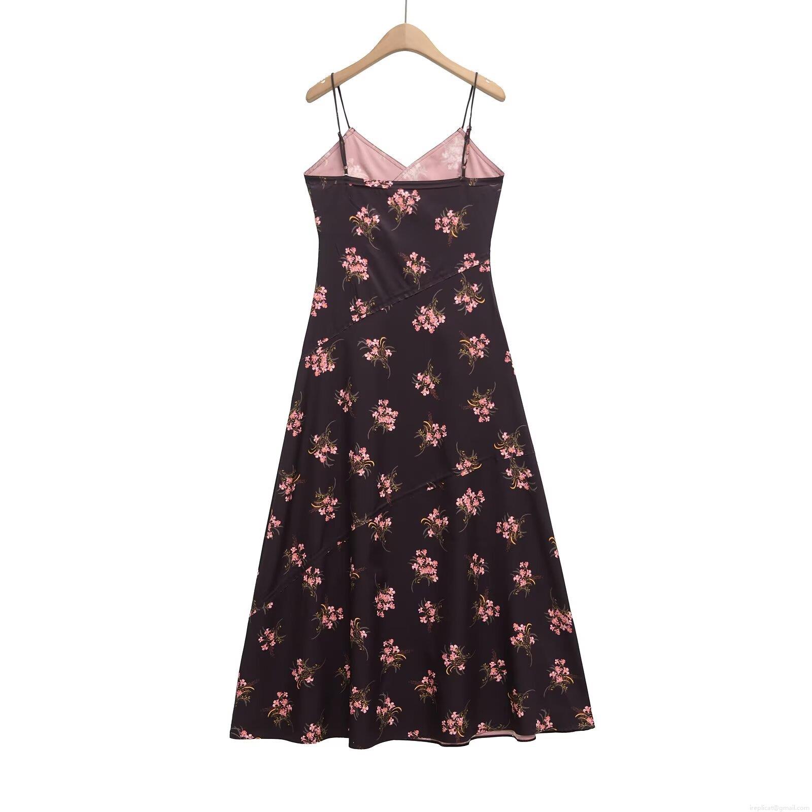 • Elegant Floral Print Cami Dress For Women Sexy V Neck Satin Polyester Sling Maxi Dress Summer Party Vacation Slim Fit Long Dress