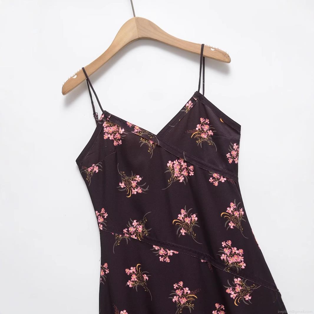 Floral Pattern, Printing, Satin, V-neck, Suspenders