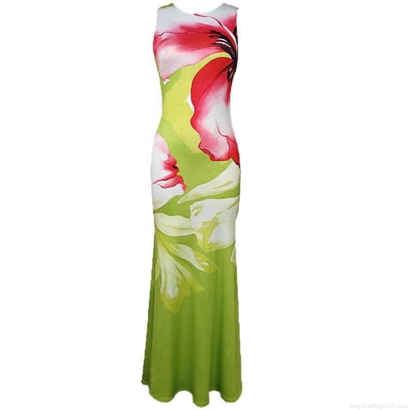 • Elegant Floral Print Maxi Dress Women Sleeveless Round Neck Slim Fit Bodycon Mermaid Hem Long Dress Vacation Party Summer Polyester Spandex Dress