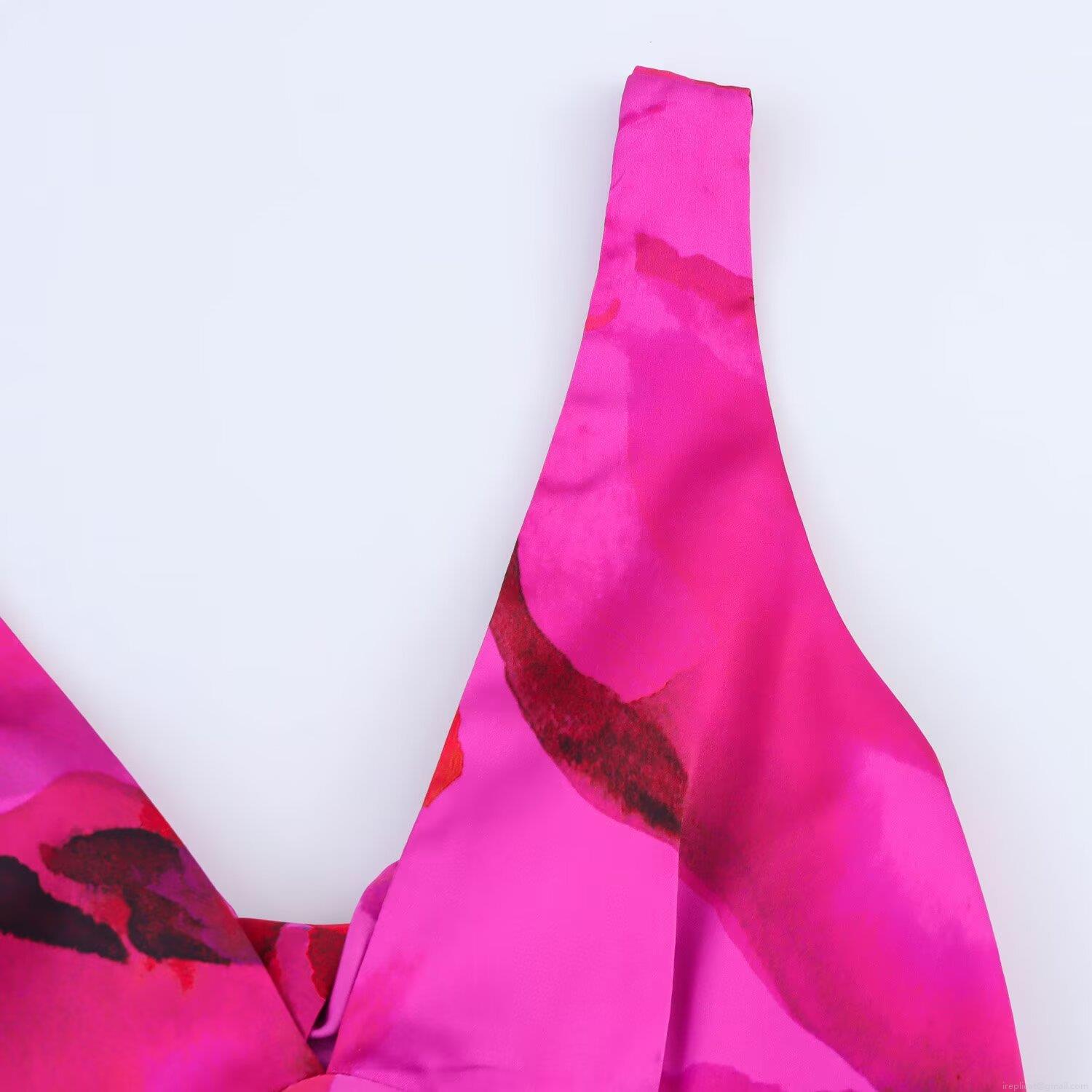 Hollow Out, Printing, Knot, V-neck, Suspenders, Forked, Abstract Flowers
