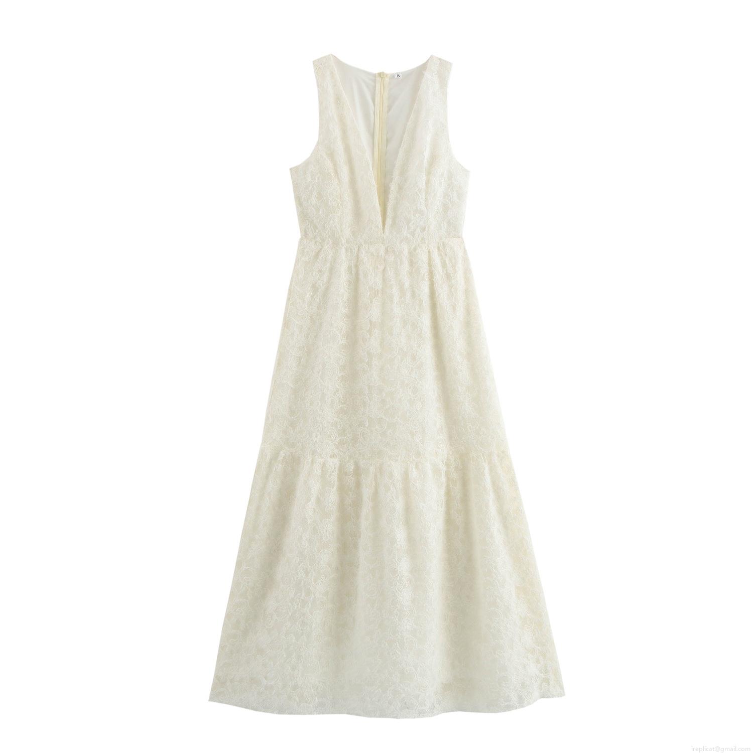 • Elegant French Deep V Neck Sleeveless Lace Maxi Dress With Polyester Lining Back Zipper A-Line Long Party Dress For Women Wedding Guest Evening Event