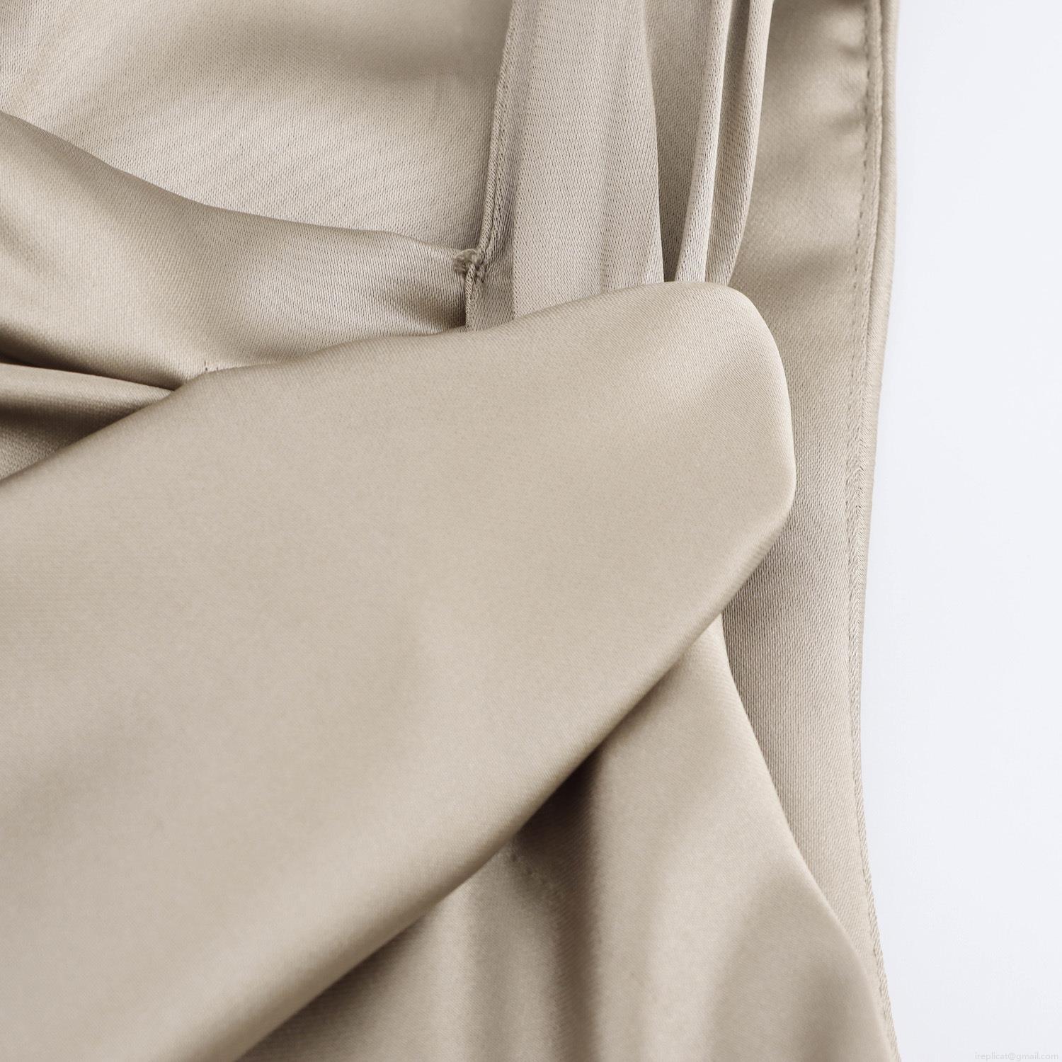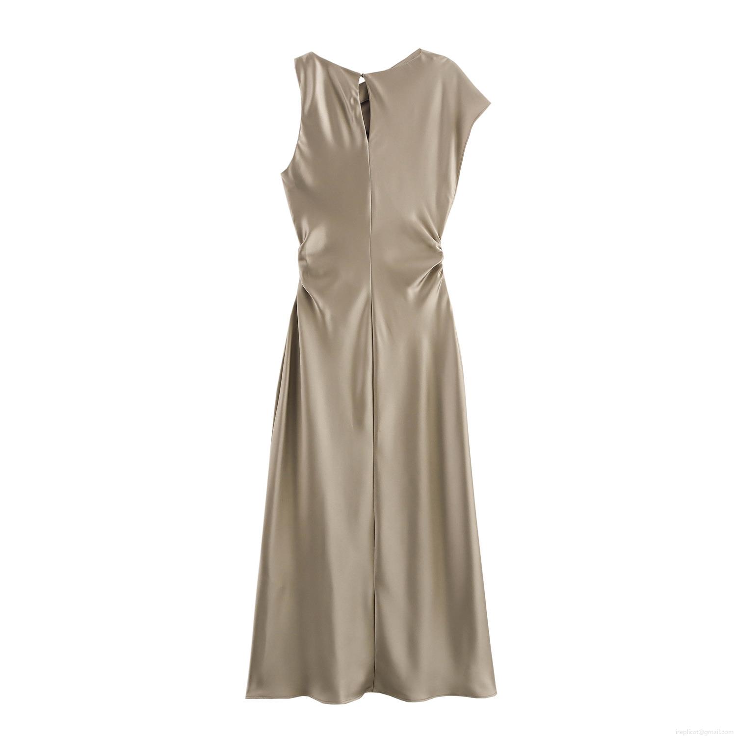 • Elegant French Satin Maxi Dress With Asymmetric Twist Detail Short Sleeve Ruched High Waist Champagne Khaki Long Party Evening Dress For Women