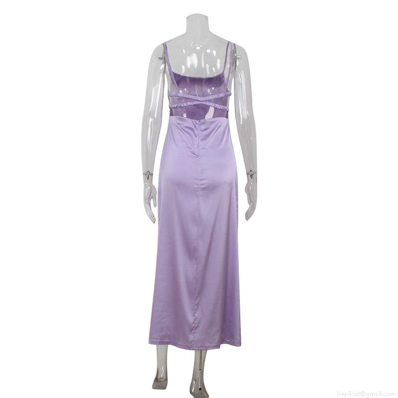 • Elegant French Style Satin Camisole Maxi Dress For Women Slim Fit Backless Bodycon Purple Party Evening Clubwear Formal Slip Dress