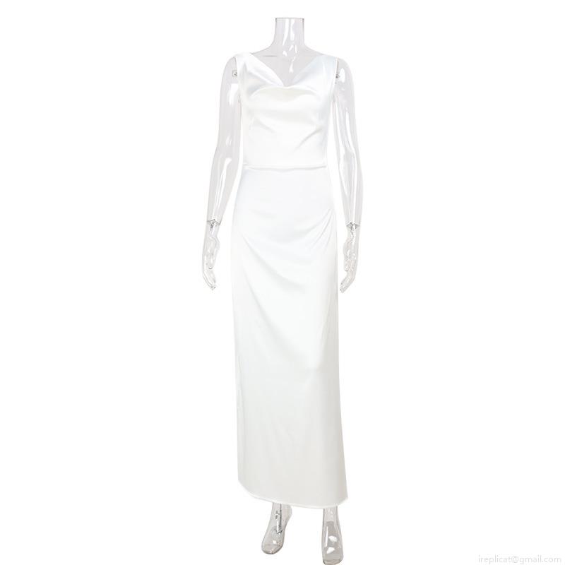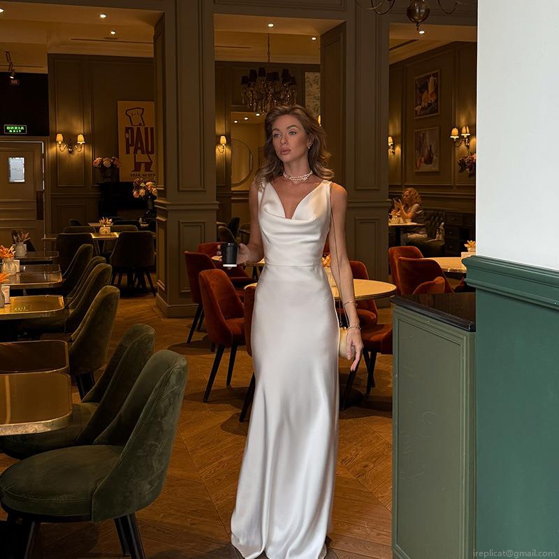 • Elegant French Style Satin V-Neck Maxi Dress Sleeveless Backless Celebrity Evening Party Slip Dress For Women