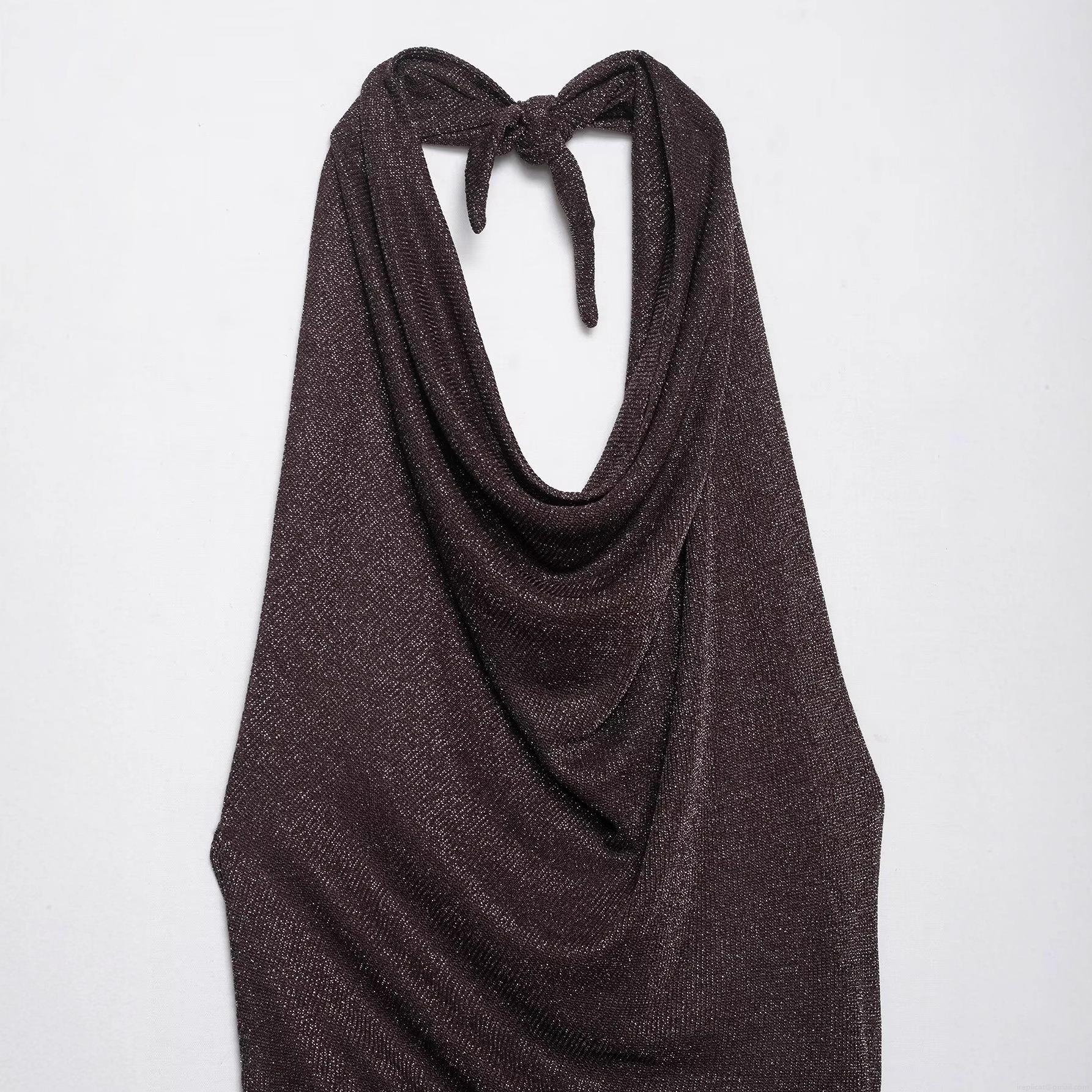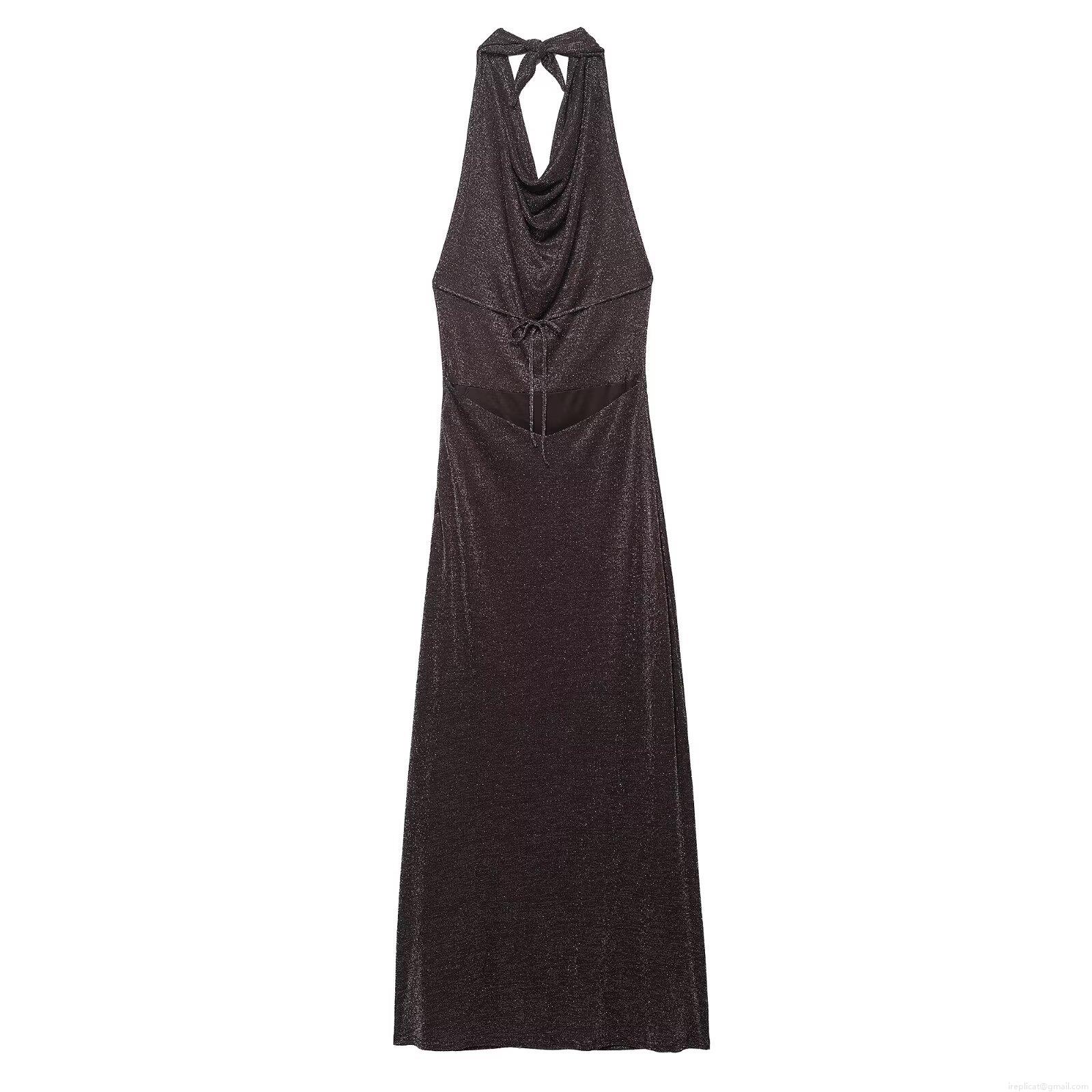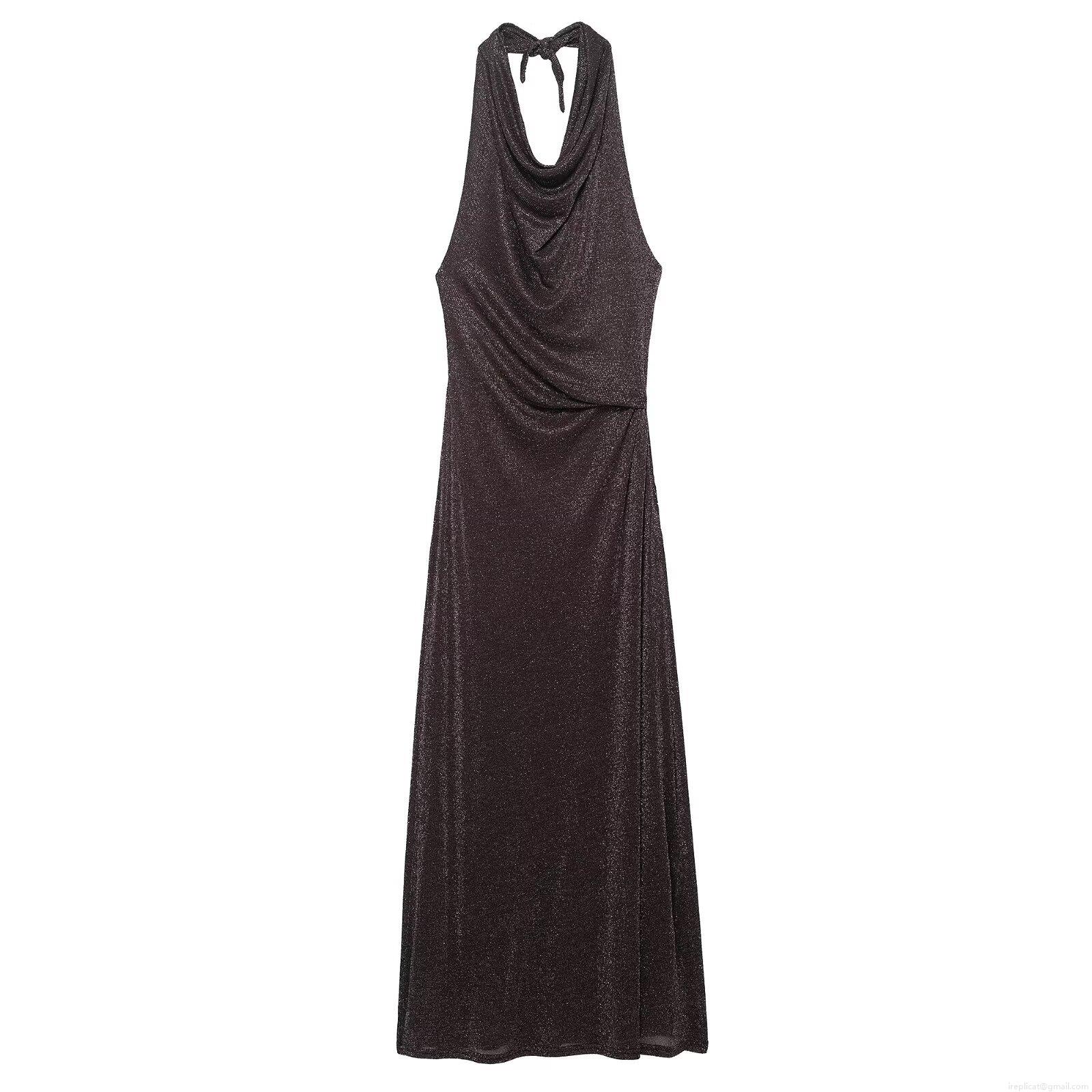 • Elegant Halter Backless Metallic Sparkly Maxi Dress Sexy Cowl Neck Sleeveless Shiny Polyester Long Dress for Women Party Evening Night Club Vacation