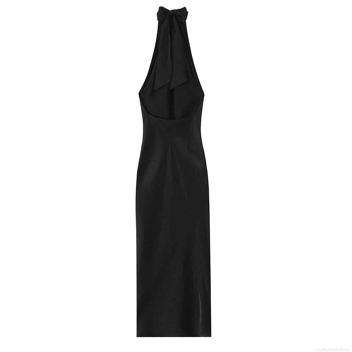 • Elegant Halter Neck Backless Satin Maxi Dress For Women Sexy Sleeveless Bow Tie Evening Party Wedding Guest Celebrity Style Long Dress Black