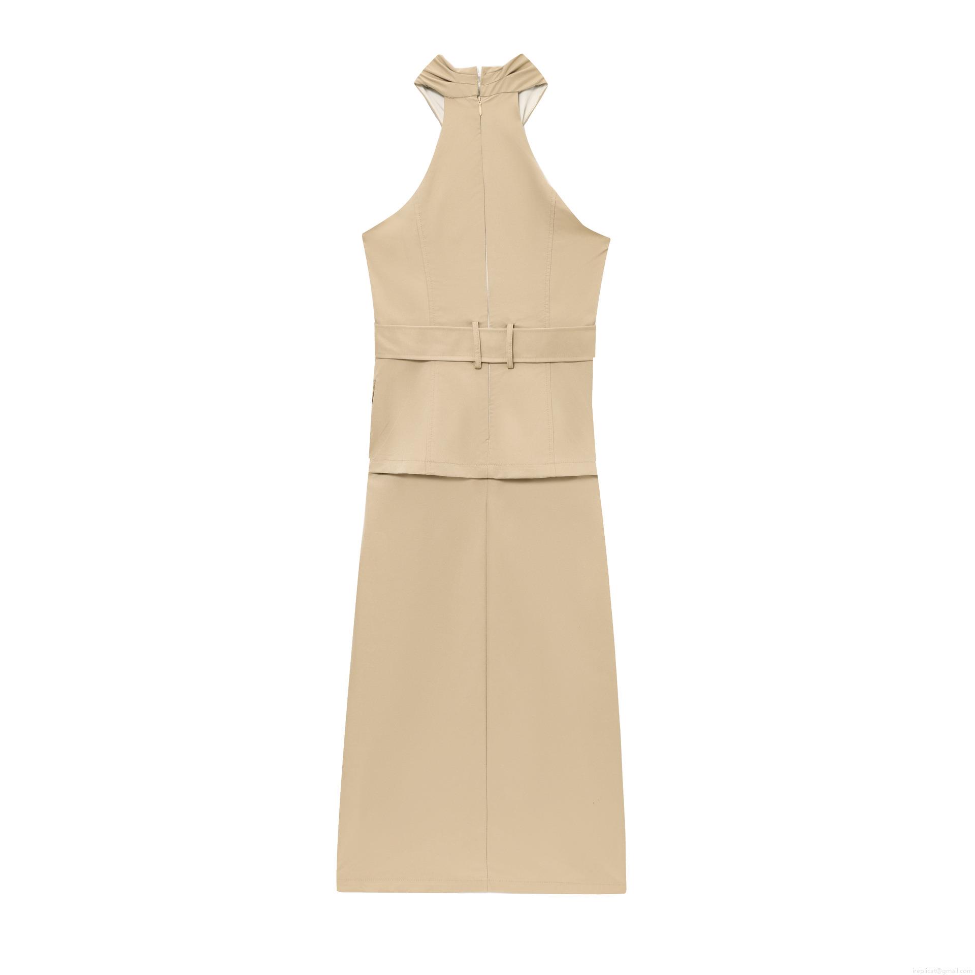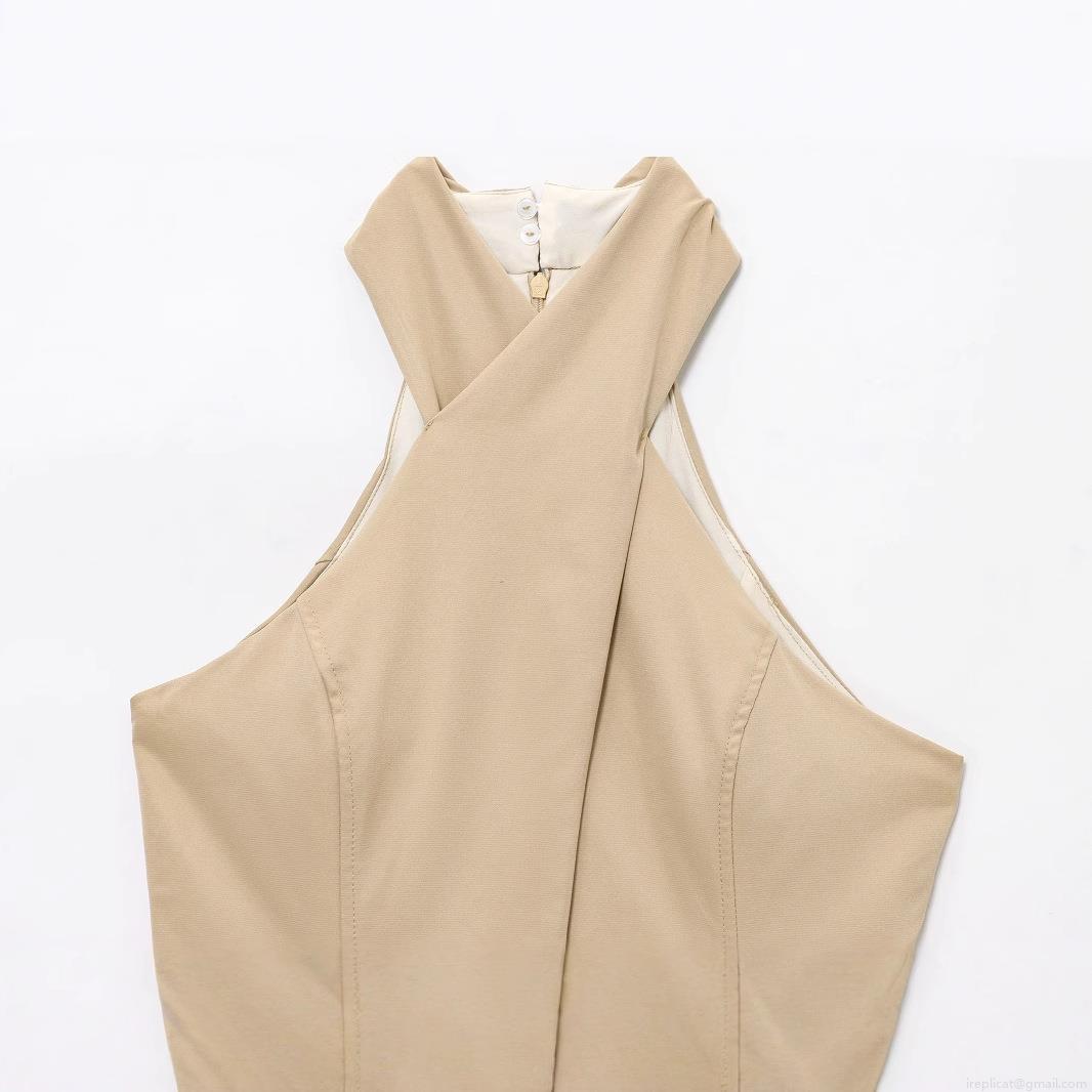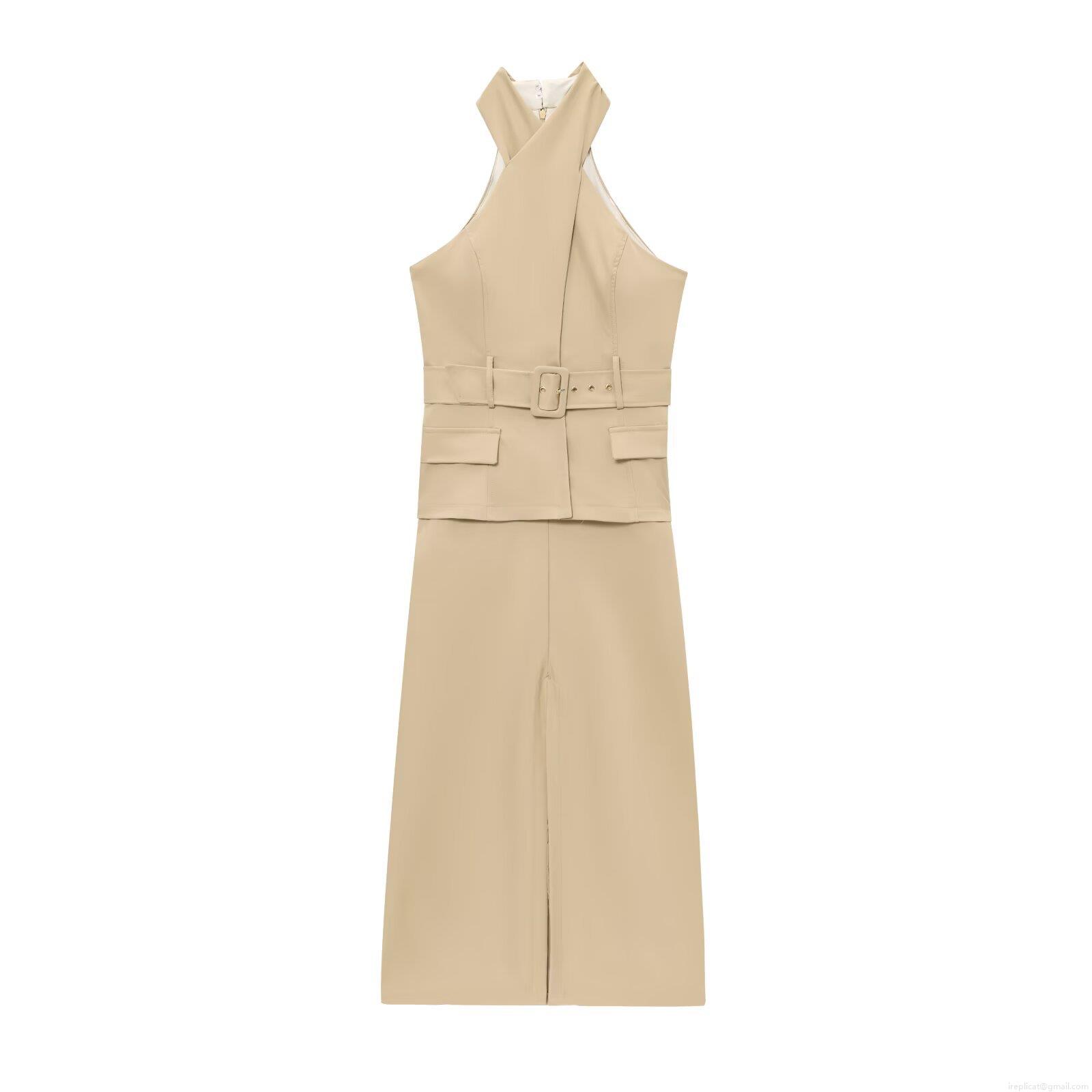 • Elegant Halter Neck Cross Design Maxi Dress With Belt Sleeveless Polyester Cotton Solid Color Long Dress For Party Evening Women