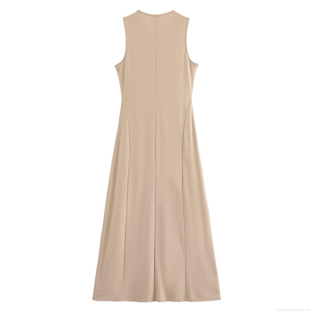 Elegant Knotted Cutout Sleeveless Maxi Dress Women Fashion Solid Color Round Neck A-Line Long Dress For Party Wedding Banquet Celebrity Style Polyester Spandex Blend